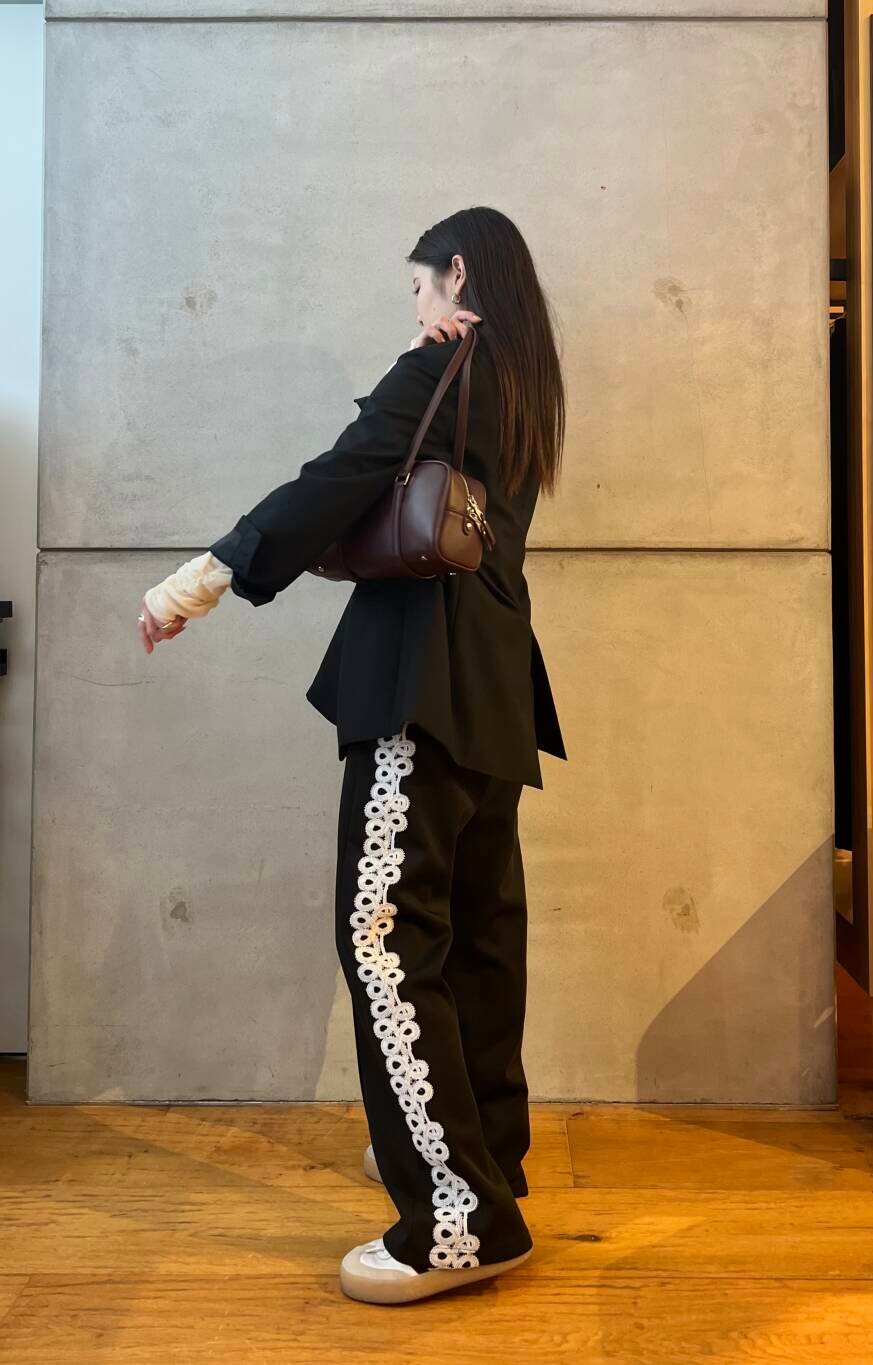 トラックパンツですが、サイドのラインがレースになっているため、カジュアル過ぎずに着ていただけます✨