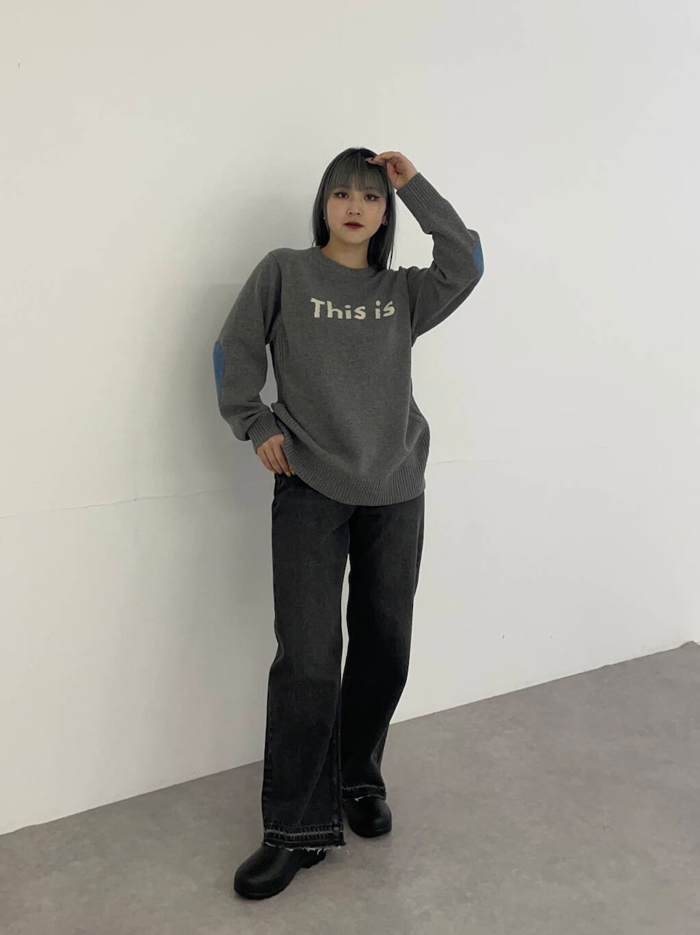 セーターのエルボーパッチが目立つ配色になっていて、そこもポイントです!