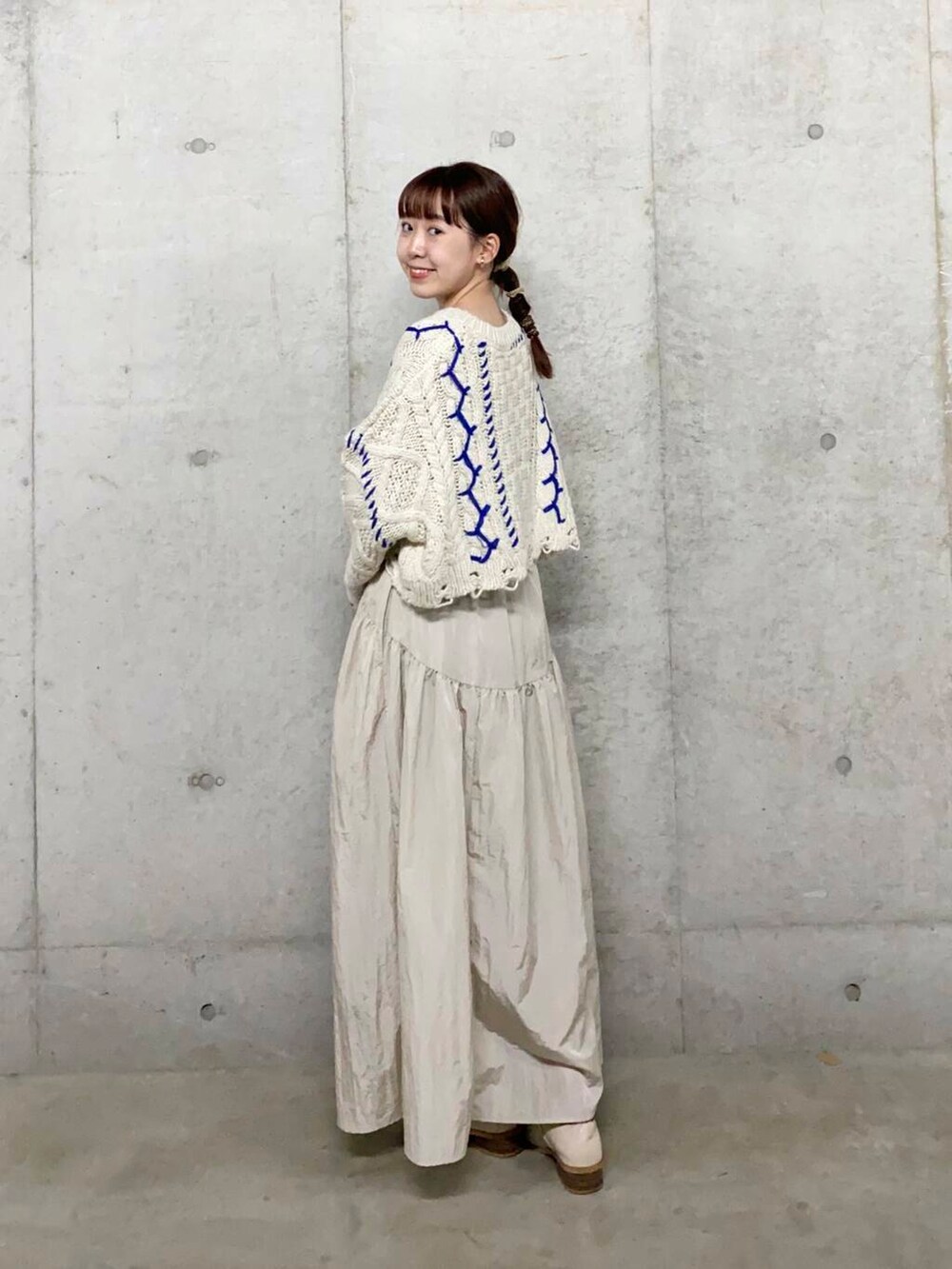 ケーブル編みとブルーの刺繍デザインが可愛すぎる〜🥹💙新作のギャザースカートとの相性抜群でした✨️