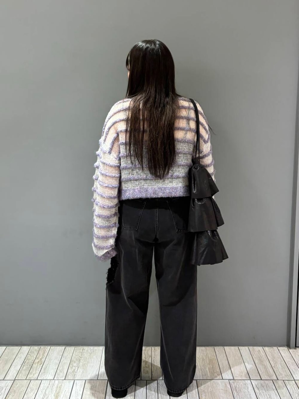 今回は、シアーボーダーニット、ダメージウォッシングデニム、フリルメタリックトートを着てみました!