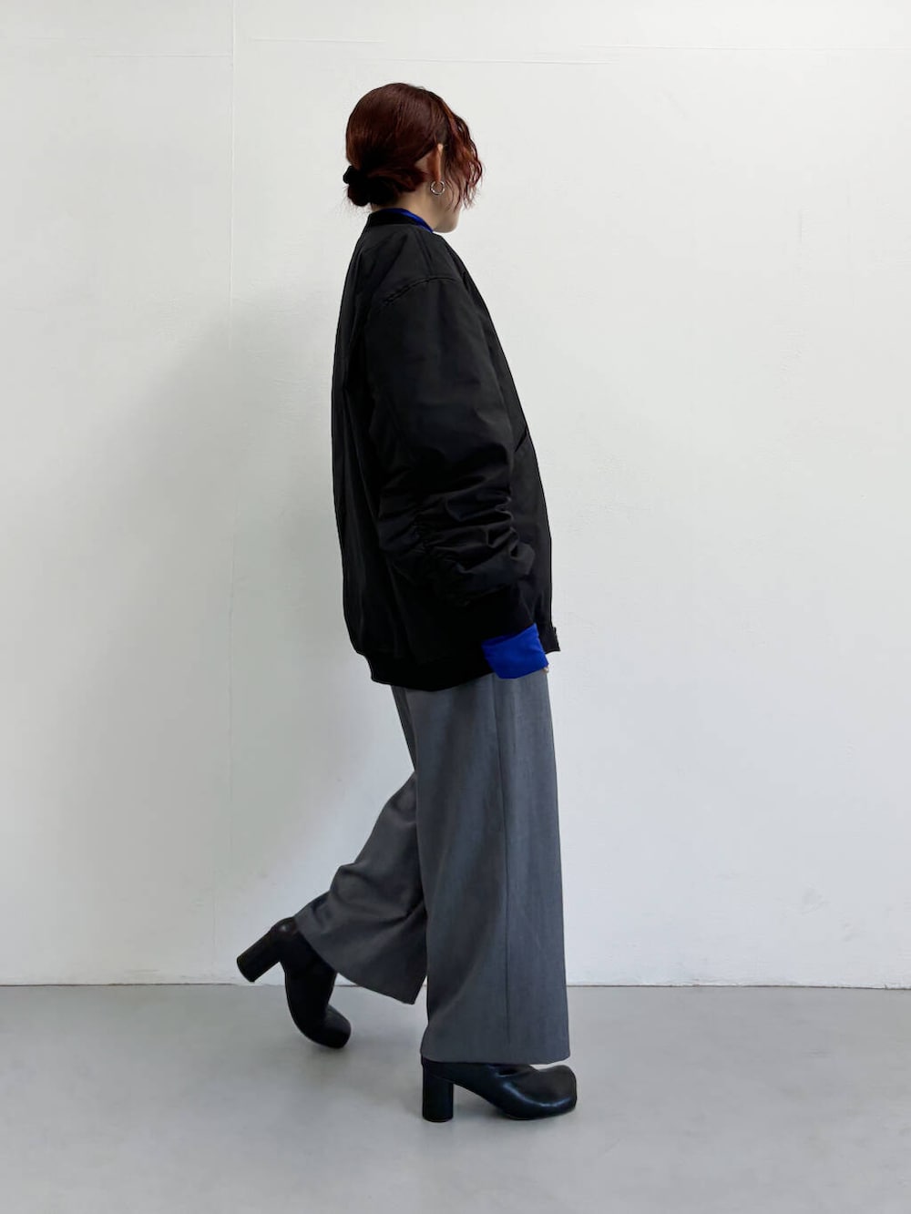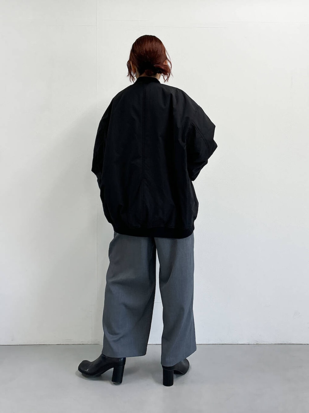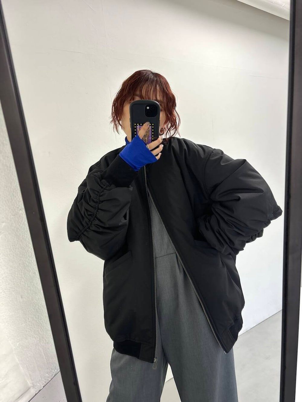 スリーブにギャザーがふんだんにあしらわれたMA1