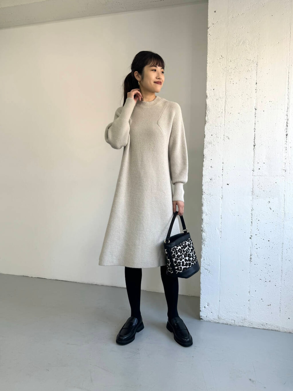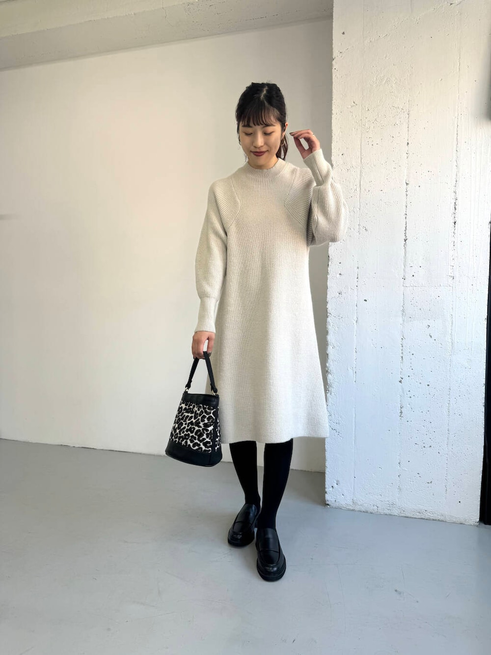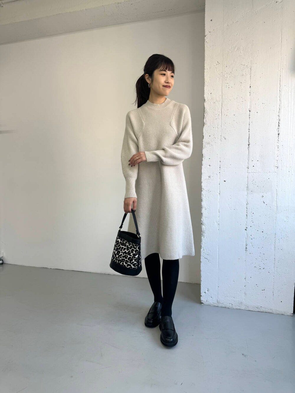 ウォーム感のあるミニ丈ニットワンピースを着用しました♪