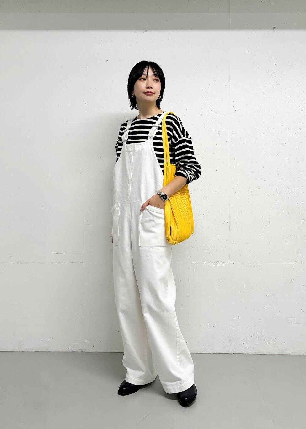サロペットはサイズ1を着用しています。