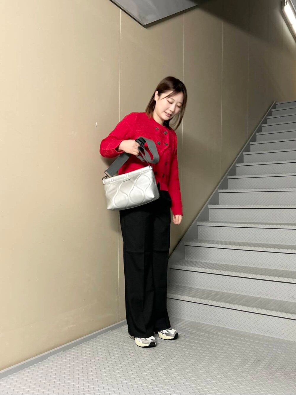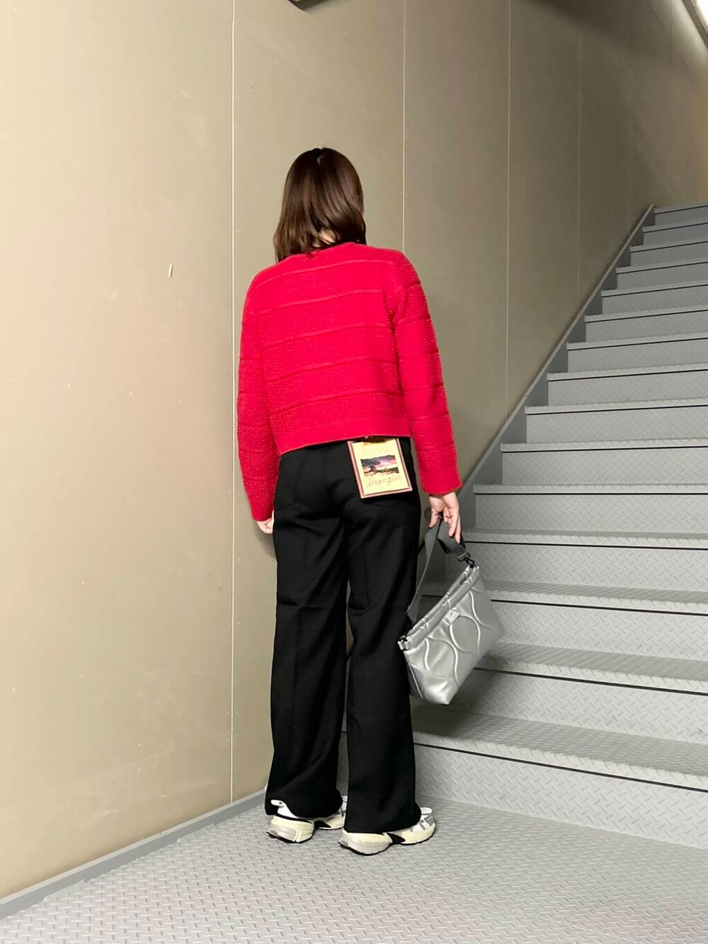 トップスのWブレストニットカーディガンはスカートでもパンツでも色んな合わせ方ができるシンプルさが👍🏻