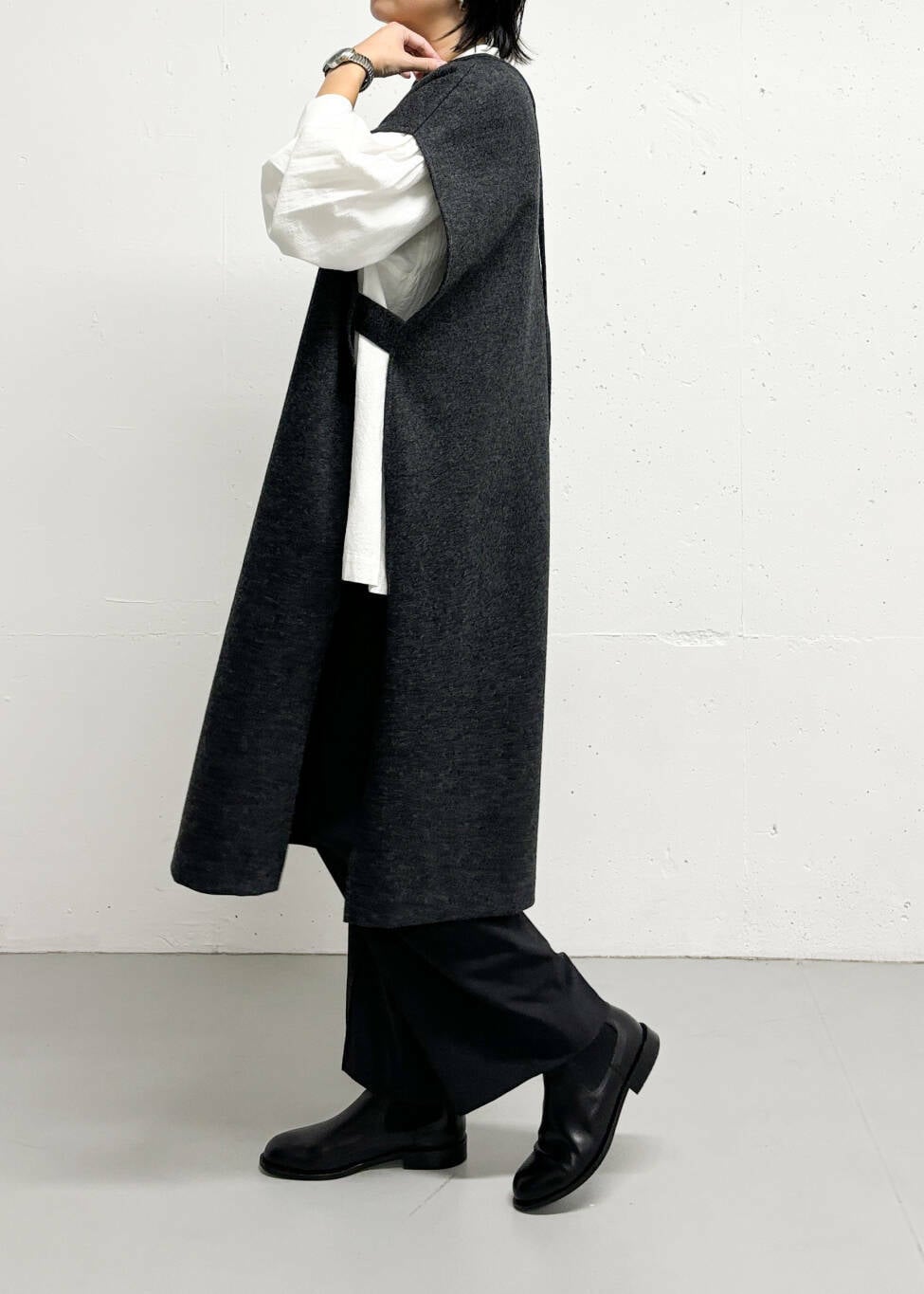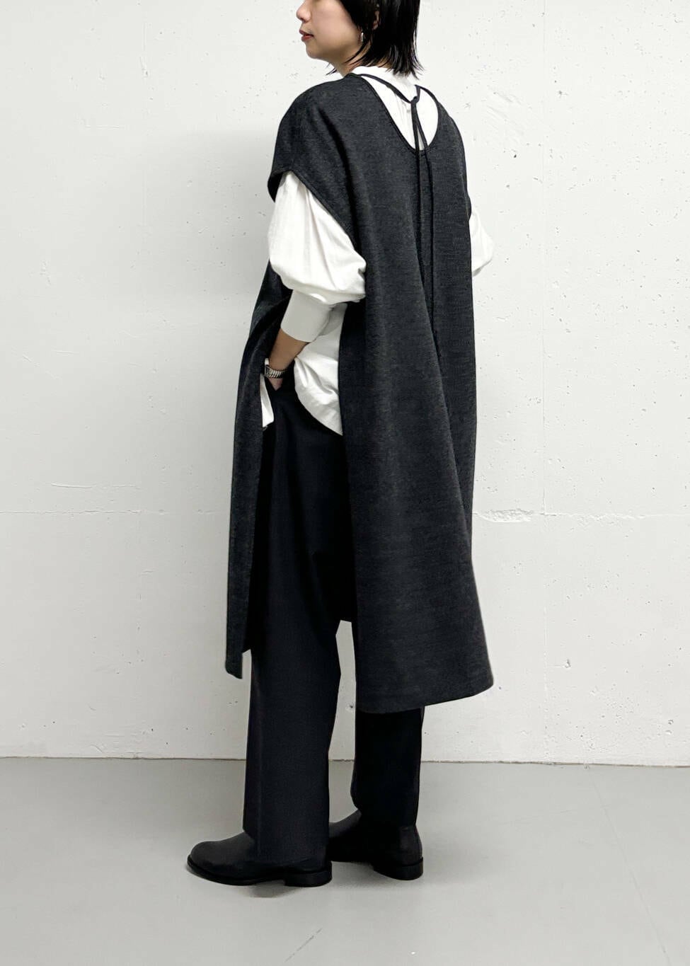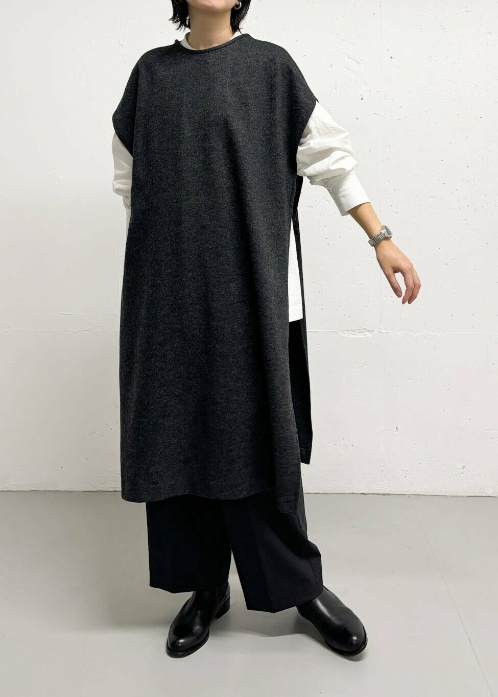 今回はボリュームスリーブのブラウスを合わせましたが、タートルカットソーなどコンパクトなインナーとも好相性◎