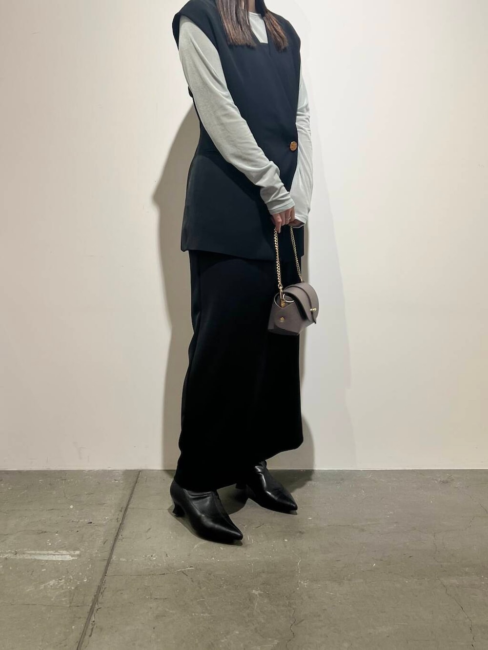 ジレは後ろがシアーになっており、程よく身体のラインをひろうシルエットできれいに着ていただけます!