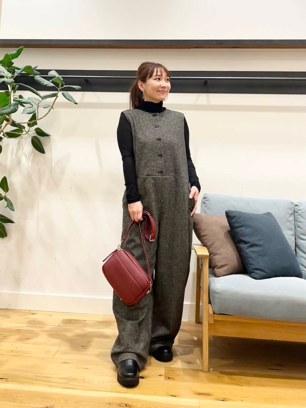 ツイード生地が一気に秋冬の季節感を出してくれるオールインワン。