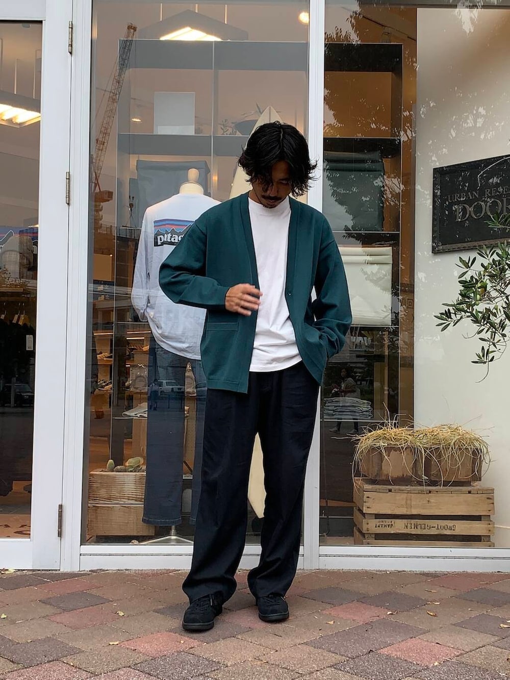 スラックスですとキレイめに、デニムですと大人カジュアルなスタイリングが楽しめます!