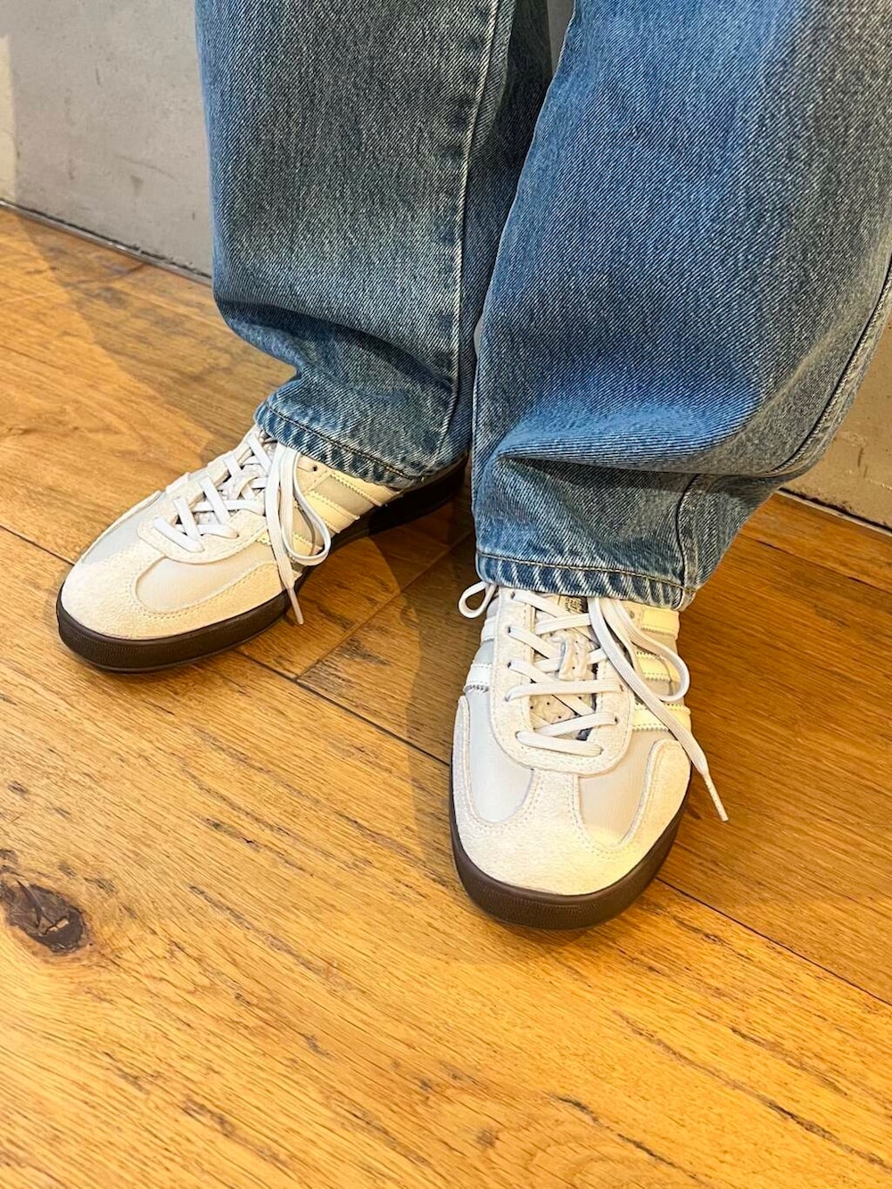 アッパーやライニング、スリーストライプス、カラー配色と素材など、全てを1から作り上げたアイテムで、グレーとブラウンなのでコーデとの馴染みがよく合わせていただきやすいです!