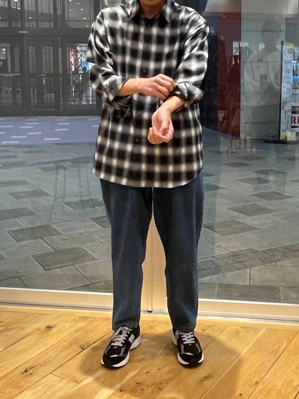 デニムパンツは2タックが入っており、リラックスした履き心地です。裾にかけてテーパードがかかっており、ワイドながらもスッキリな見た目ではけます!