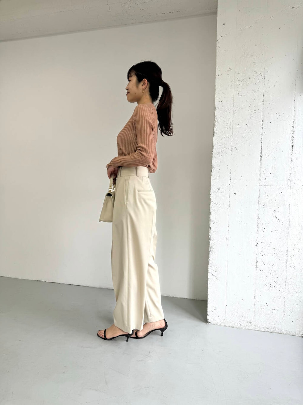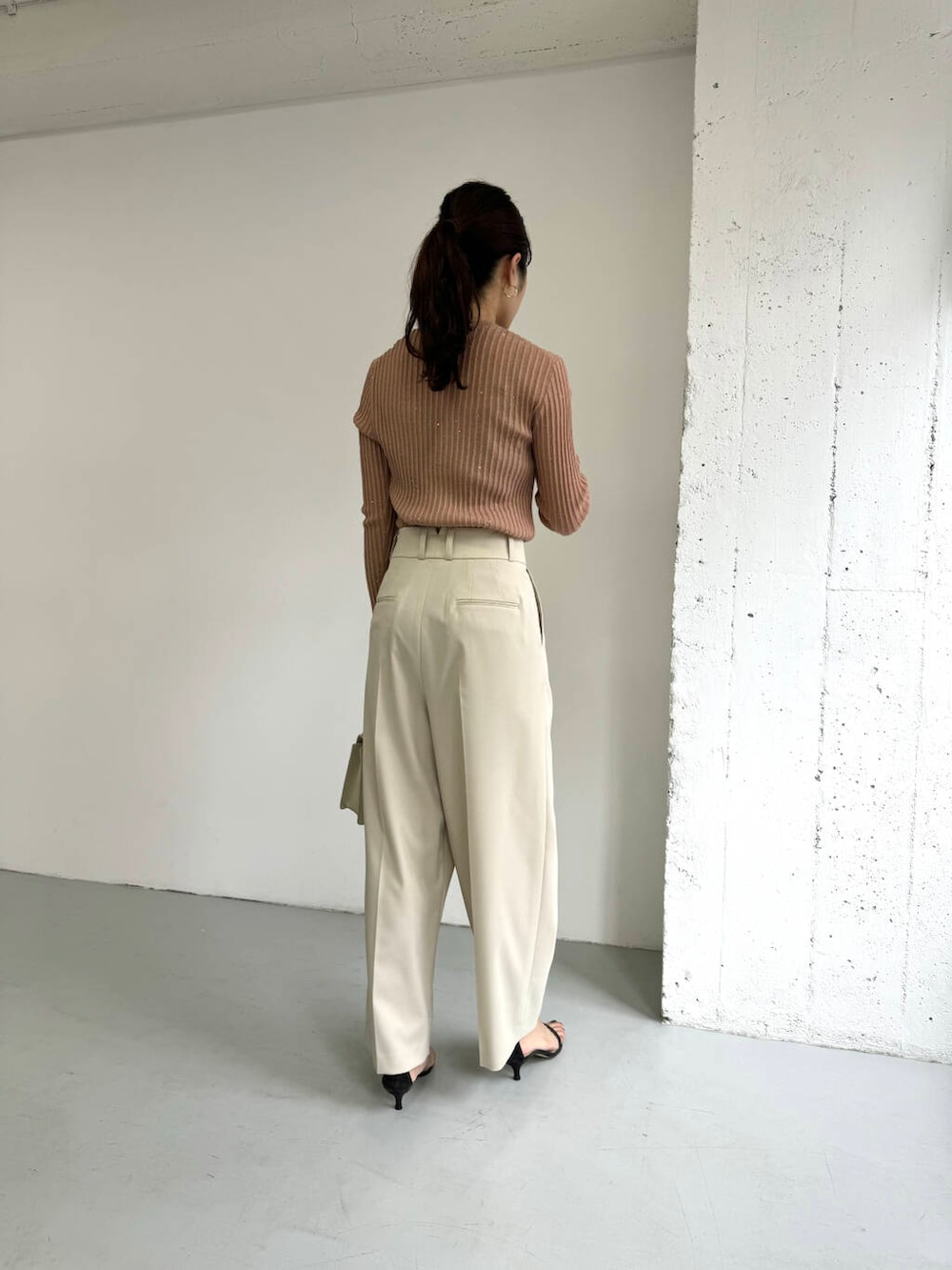 合わせたラップパンツは、シンプルなトップスやコンパクトトップスと好相性で