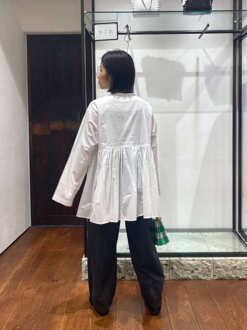 こちらのブラウス、入荷時から気になってたのですが、試着してみると、形がめちゃくちゃ可愛かったです!!