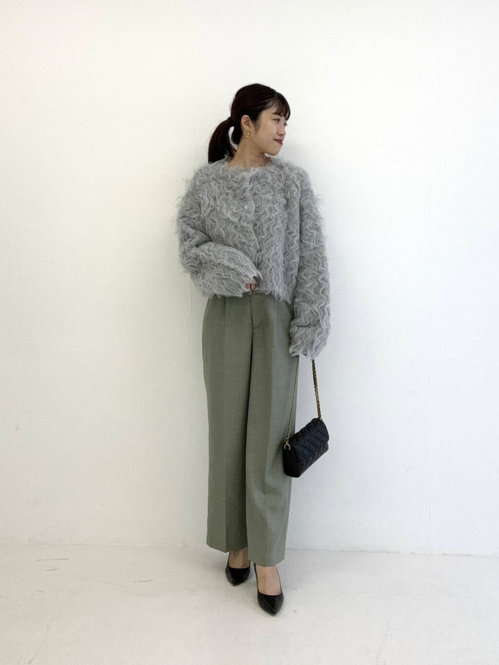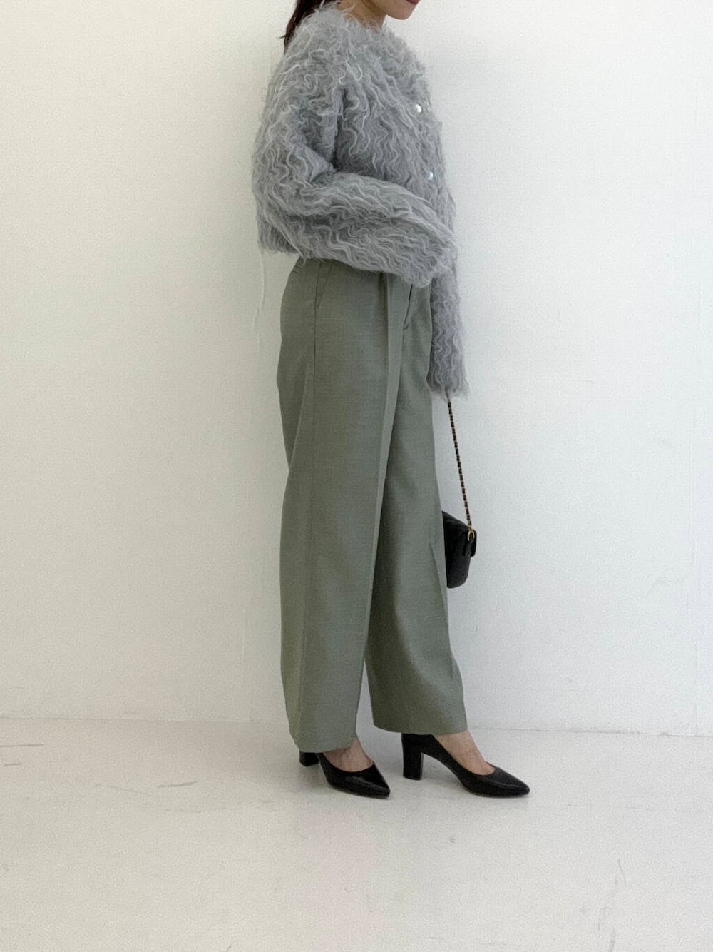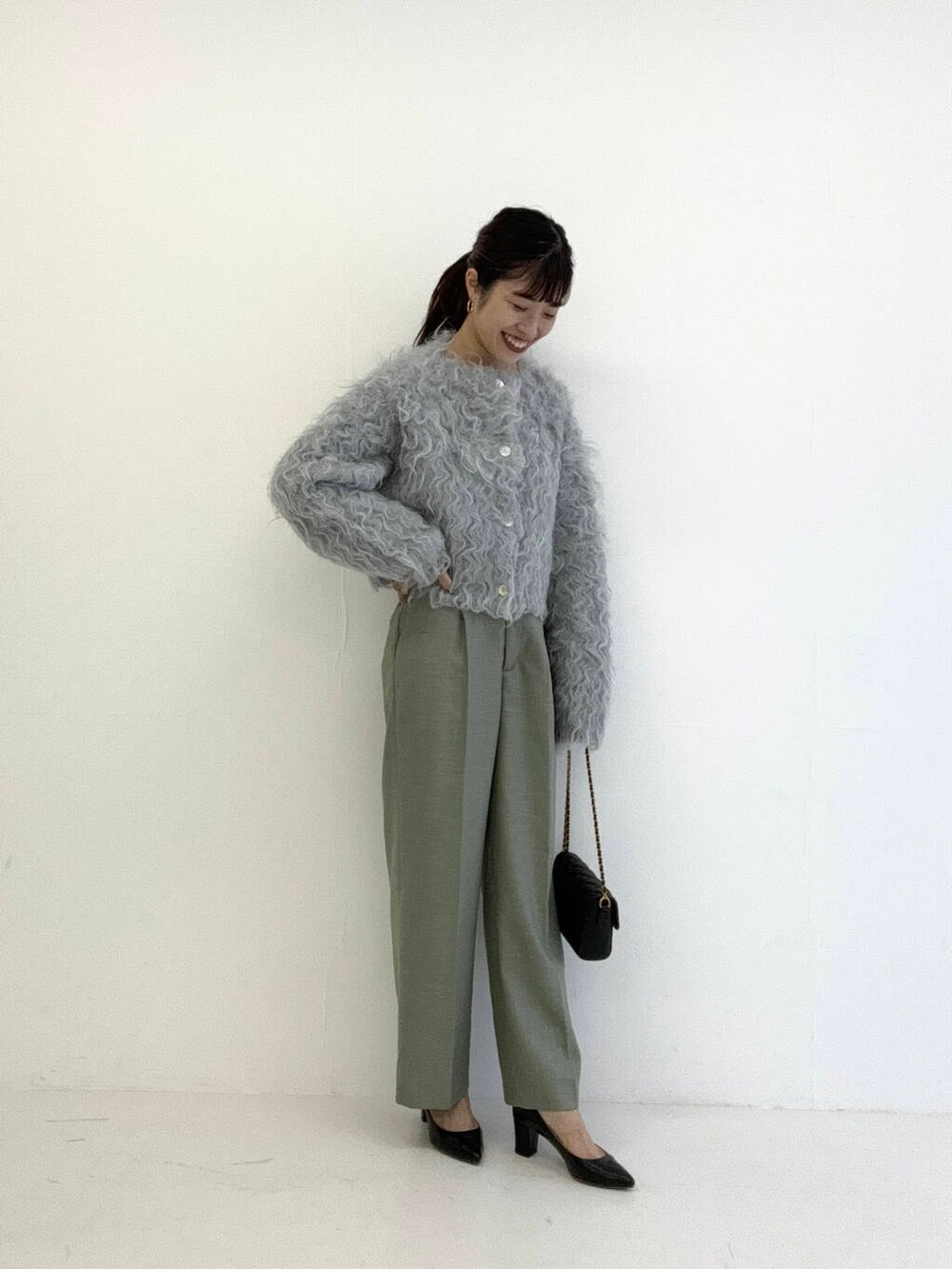 お袖や身幅はゆとりがありますが、コンパクトな着丈なのでバランスもとりやすいです。