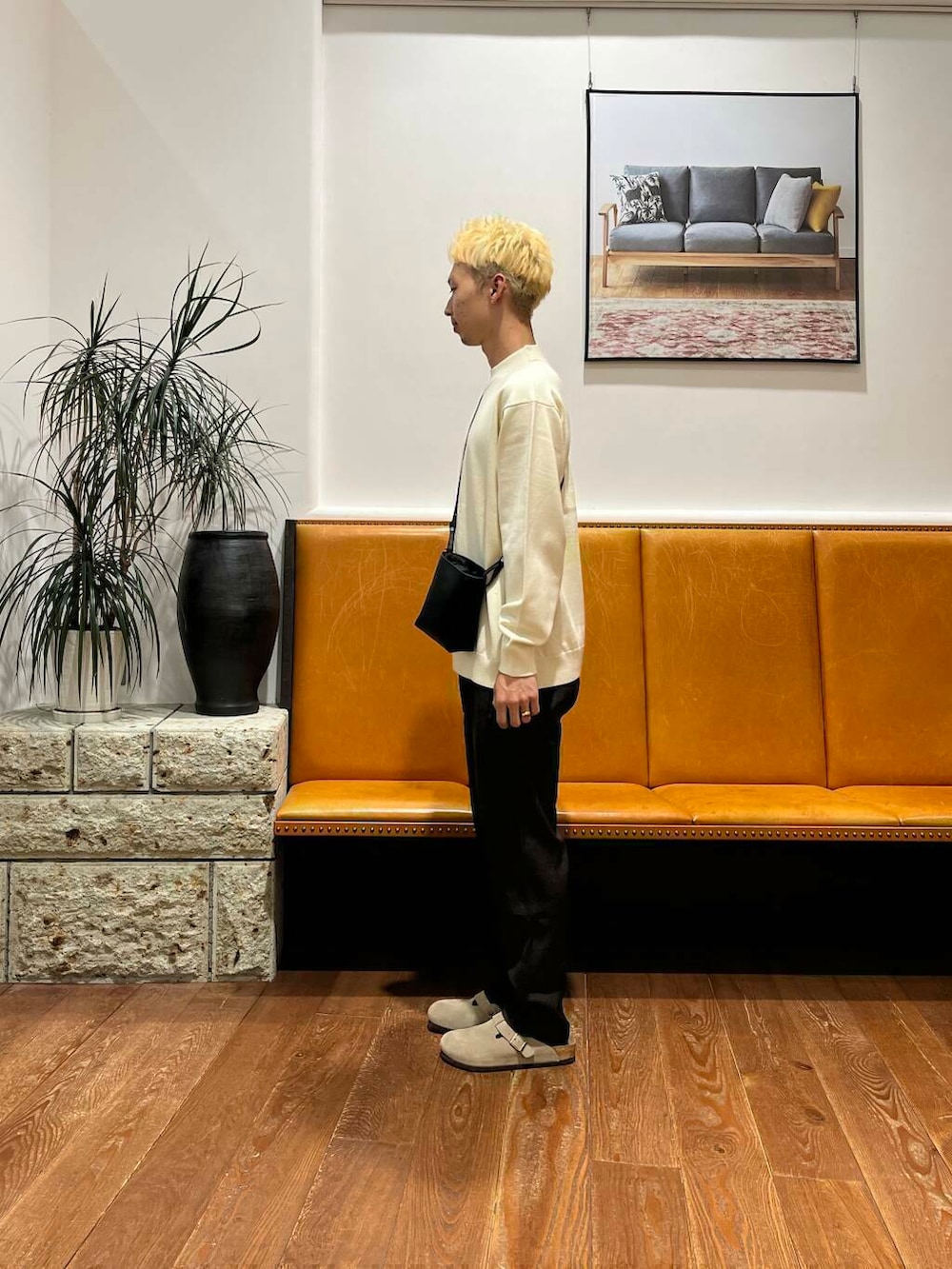 パンツはグラミチのLANATECウールライクトラウザー。