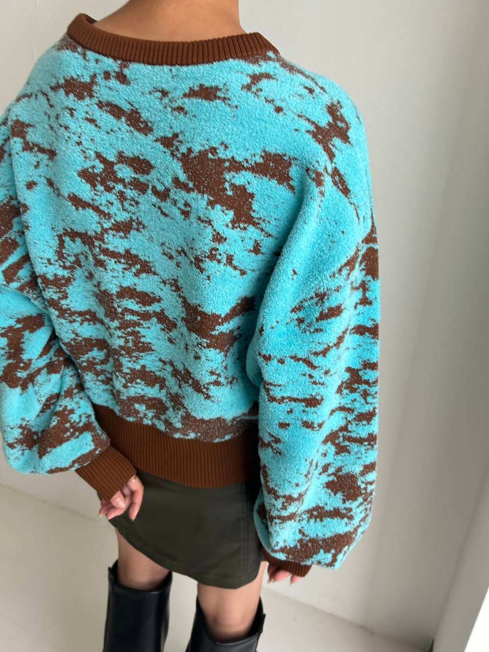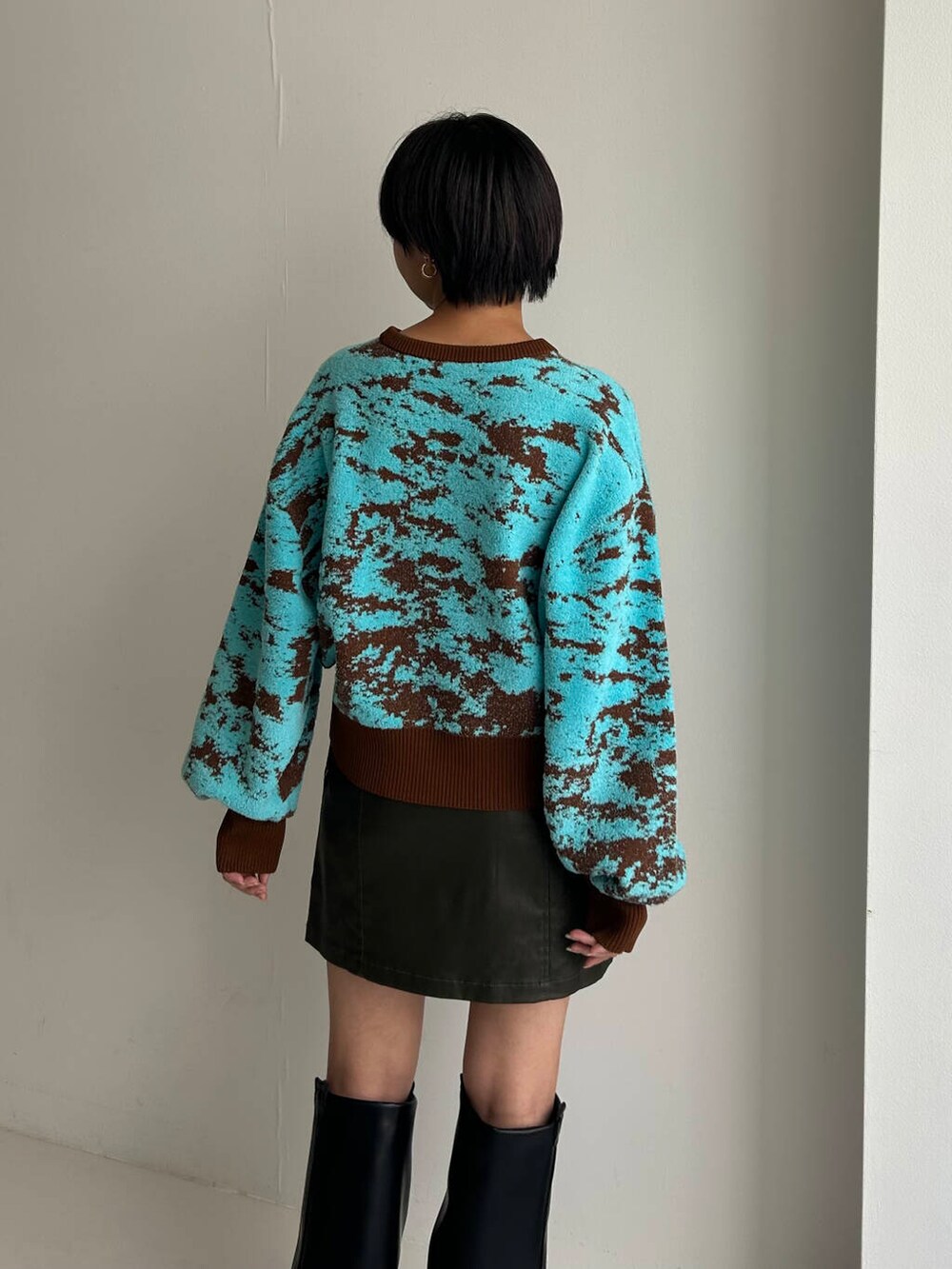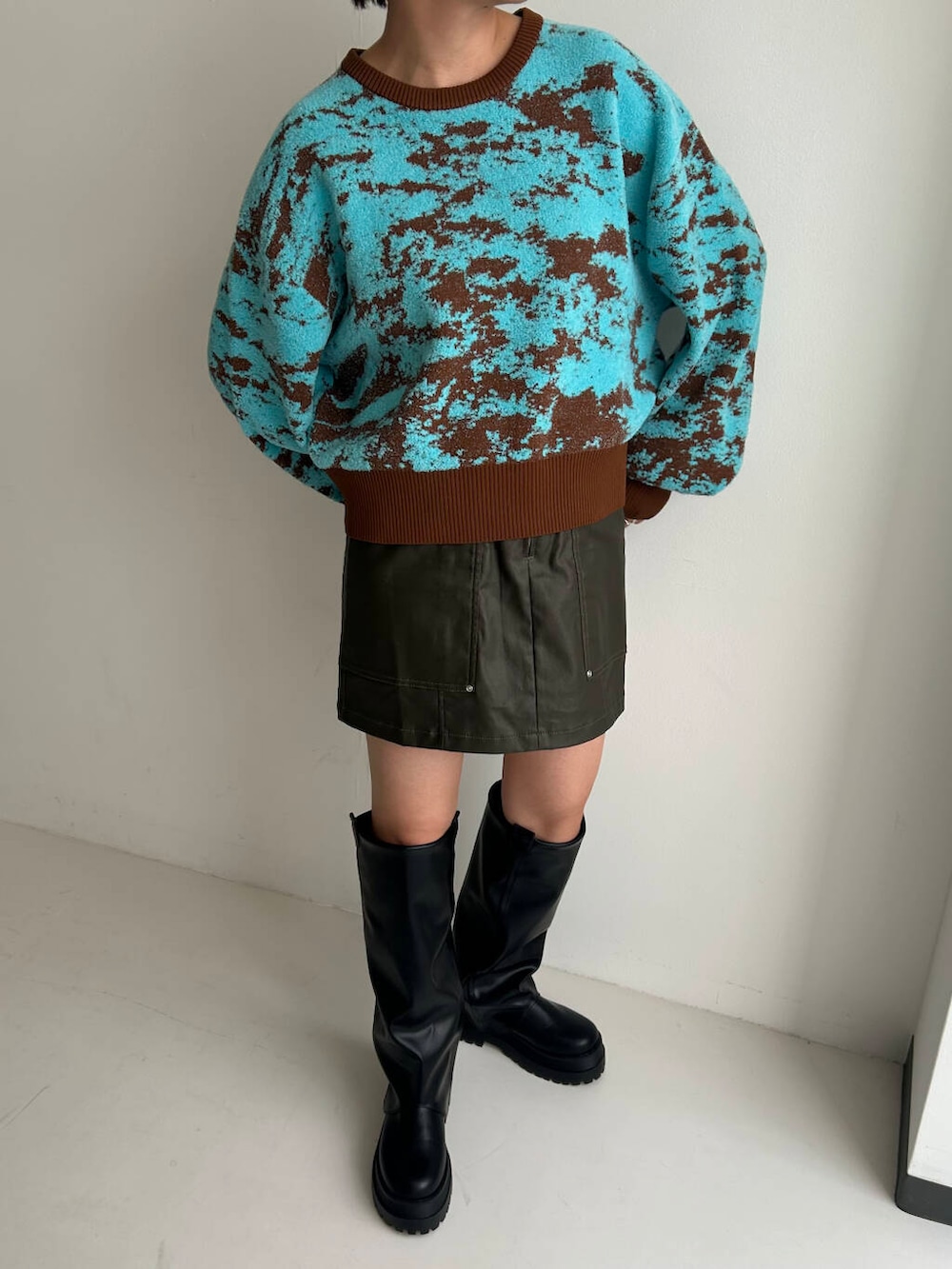 個性的で存在感があるカラーと、表面が少しポコポコと凹凸がある編み地で、他にないデザインが可愛い🥰