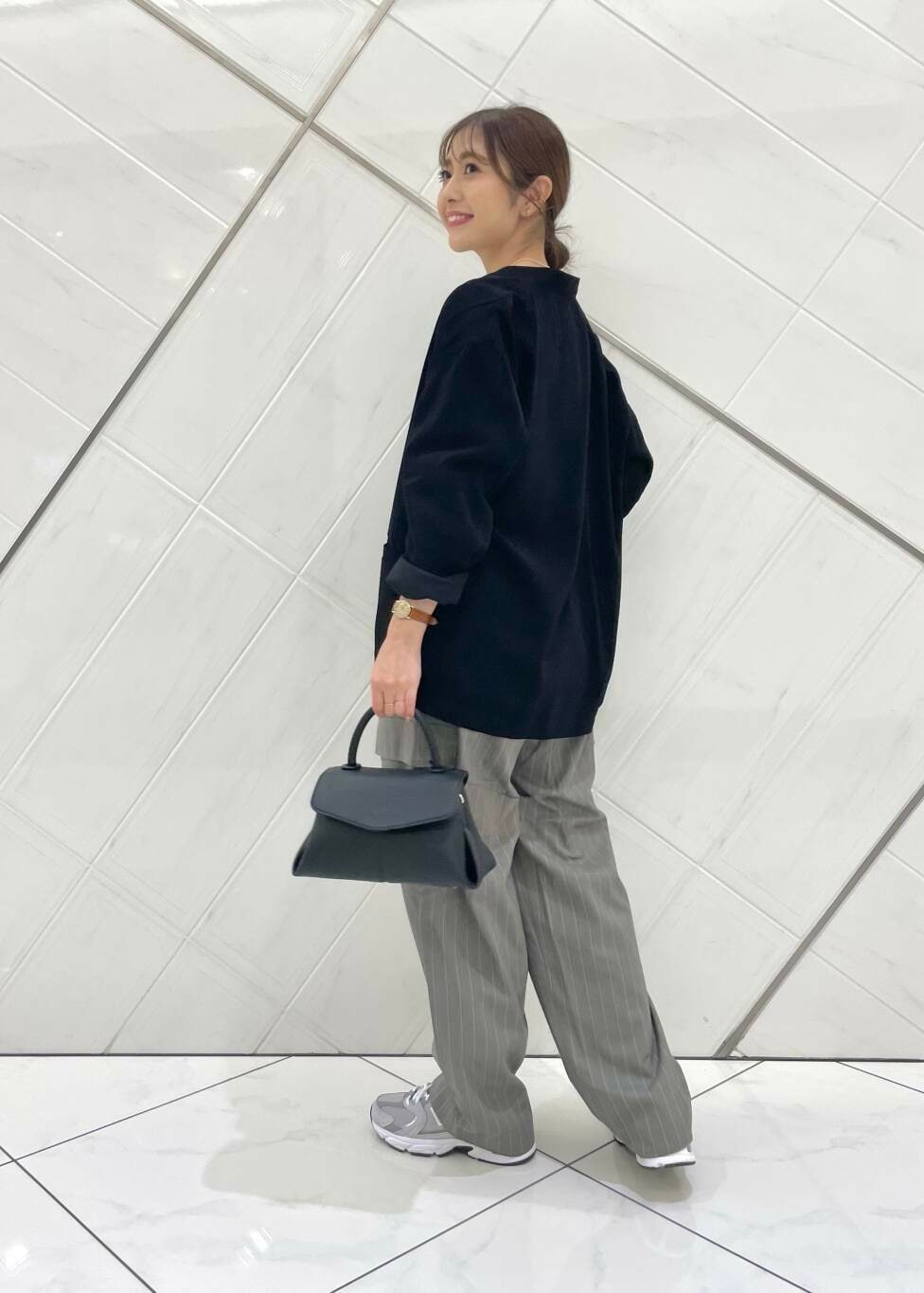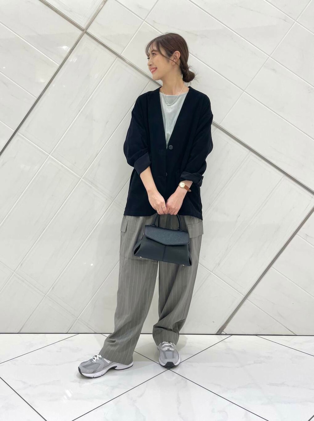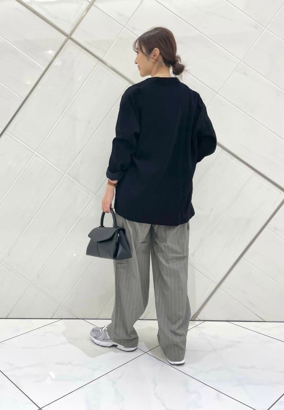 パンツはウエストはピッタリでシルエットはカーブになっており、ゆったりとしているのでラフなこなれ感が出て可愛いです。