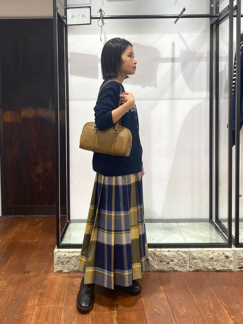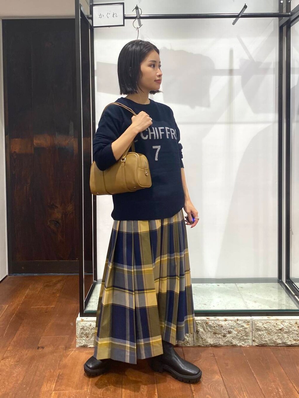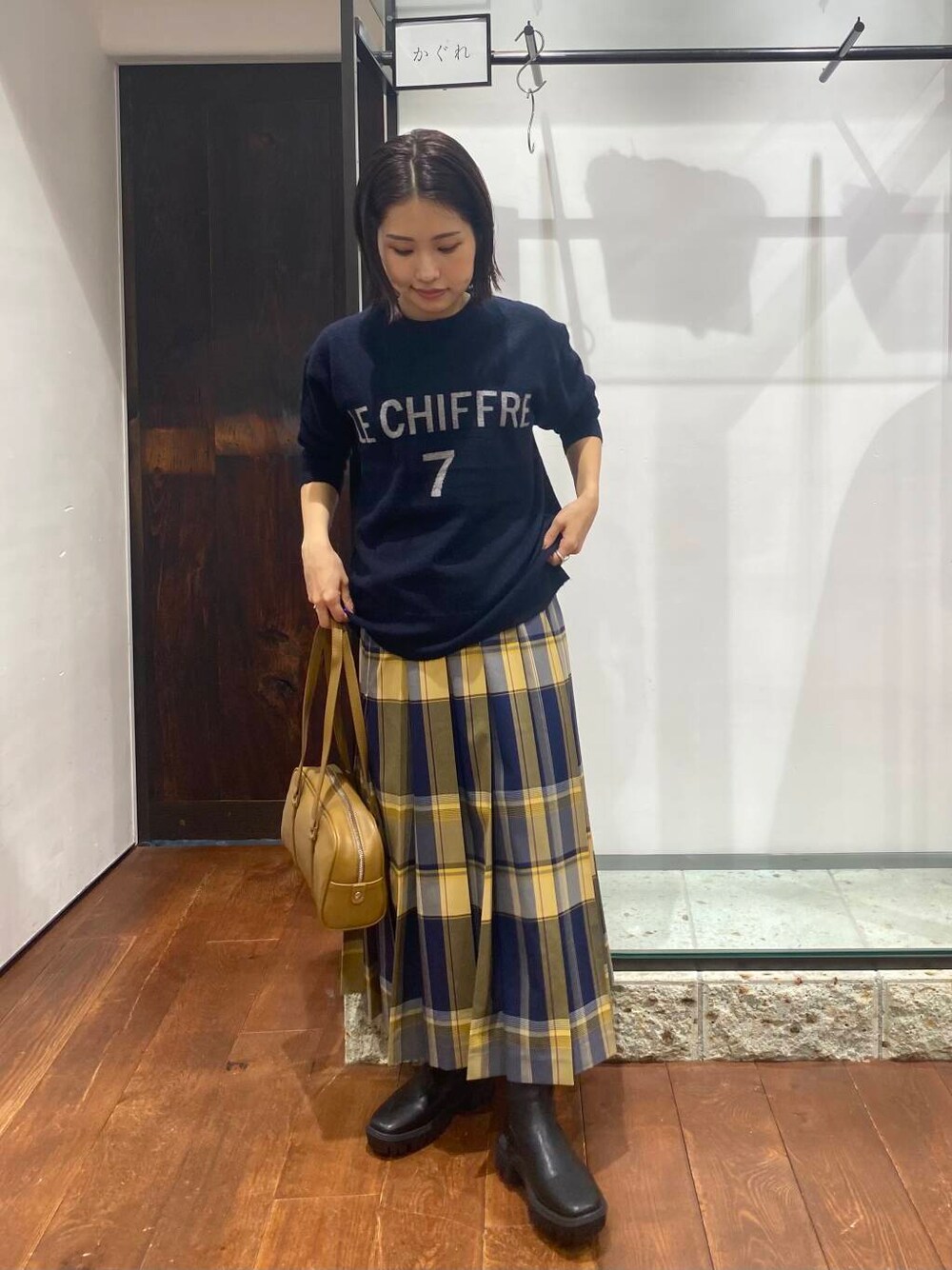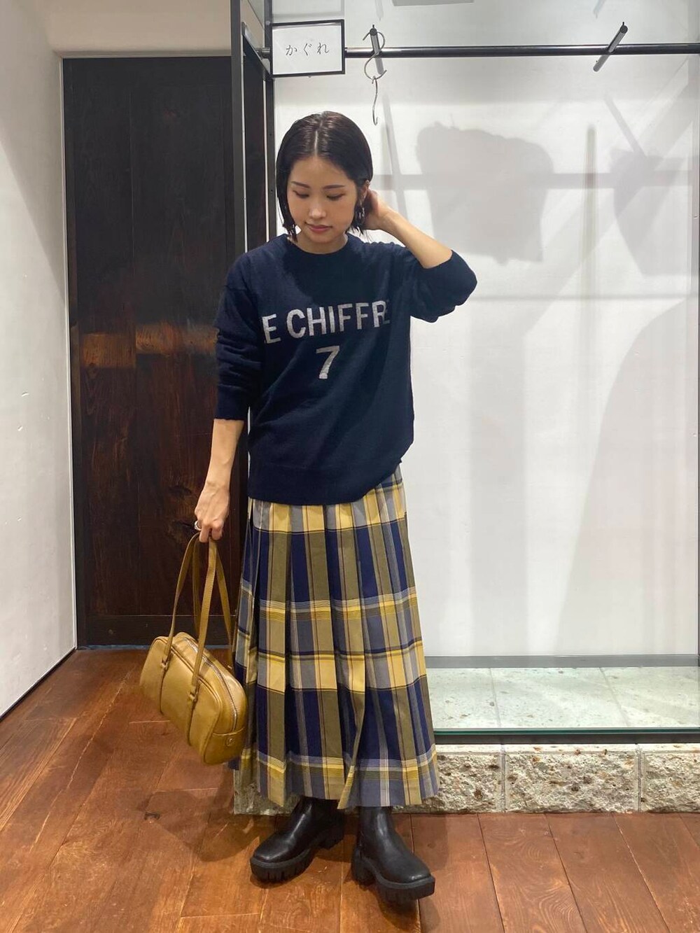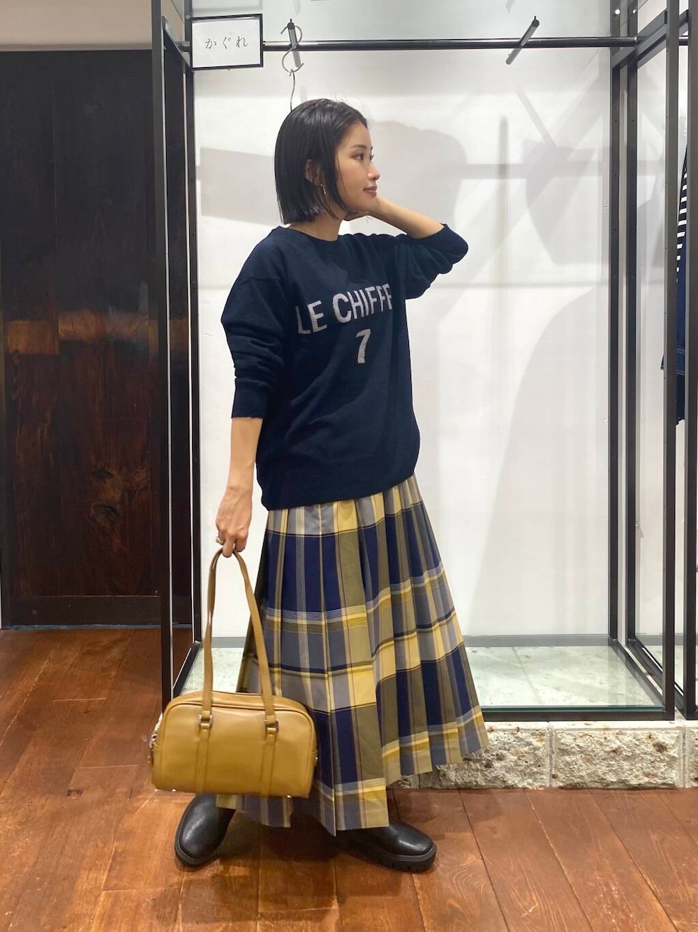 ニット×チェックスカートが秋っぽくて可愛いです!