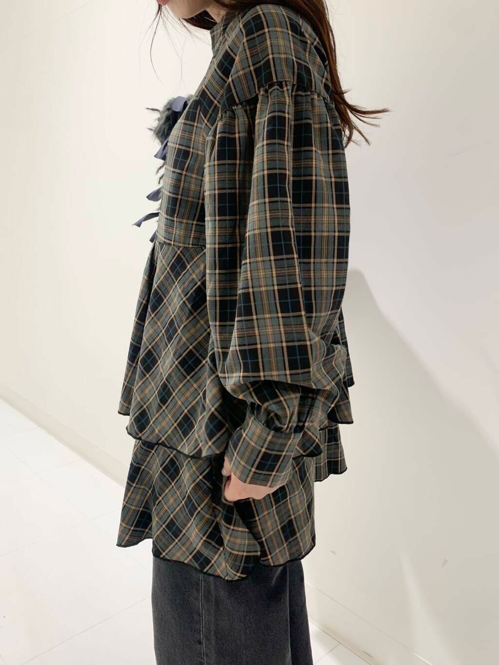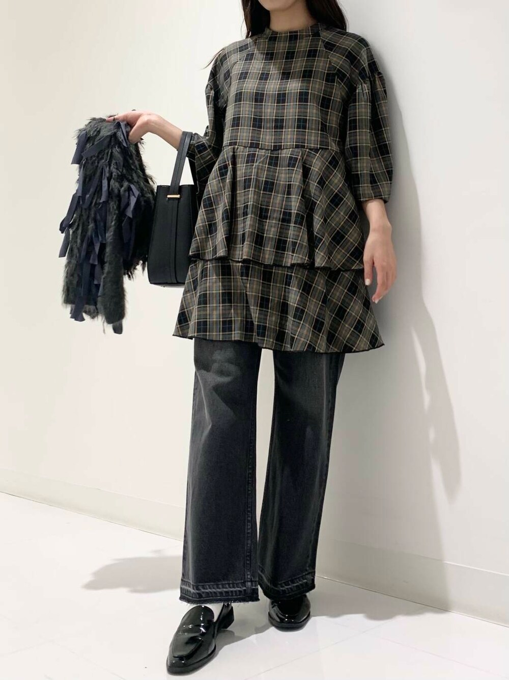 ティアードデザインが可愛い雰囲気の秋らしいチェックワンピースです◎