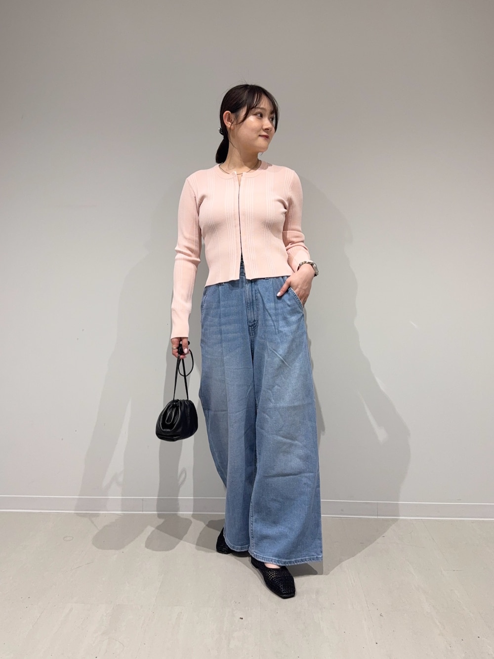 パンツはLeeの別注でバギーのシルエットがとても綺麗です!161cmでSサイズ着用で長さはスニーカーを合わせると地面に付く心配はないです!