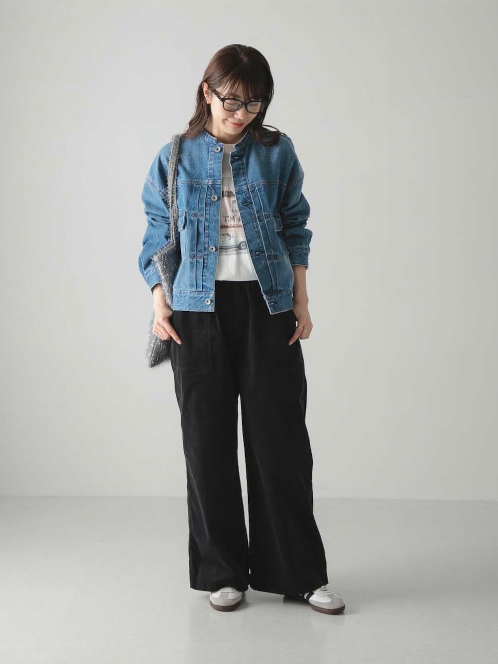 パンツは季節感の出るコーデュロイ素材!