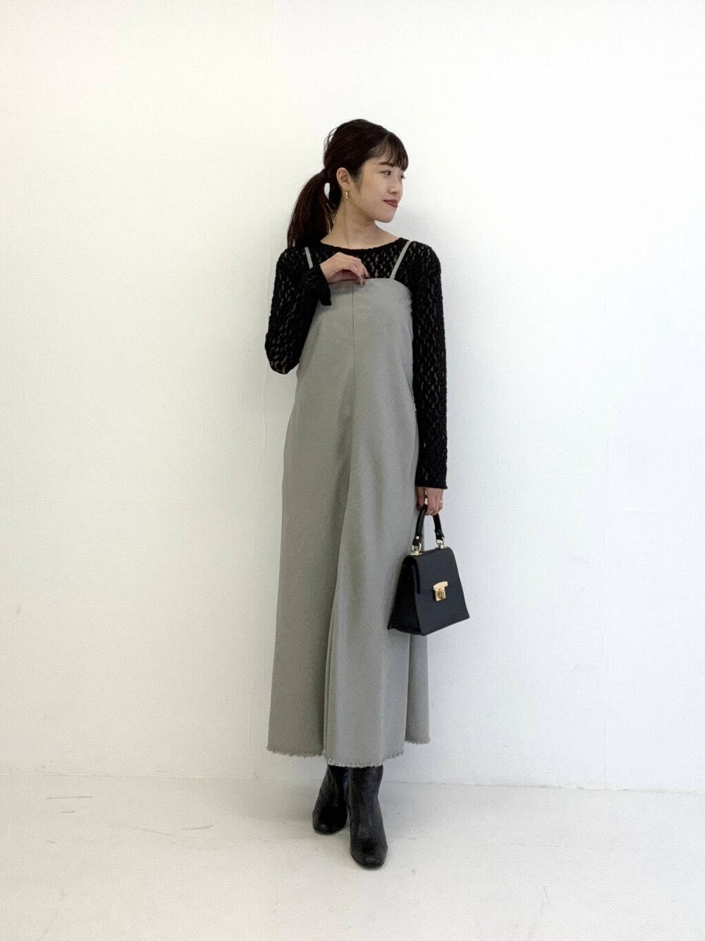 裾がバイヤスカットになっており、動くと揺れ感が女性らしい印象です。