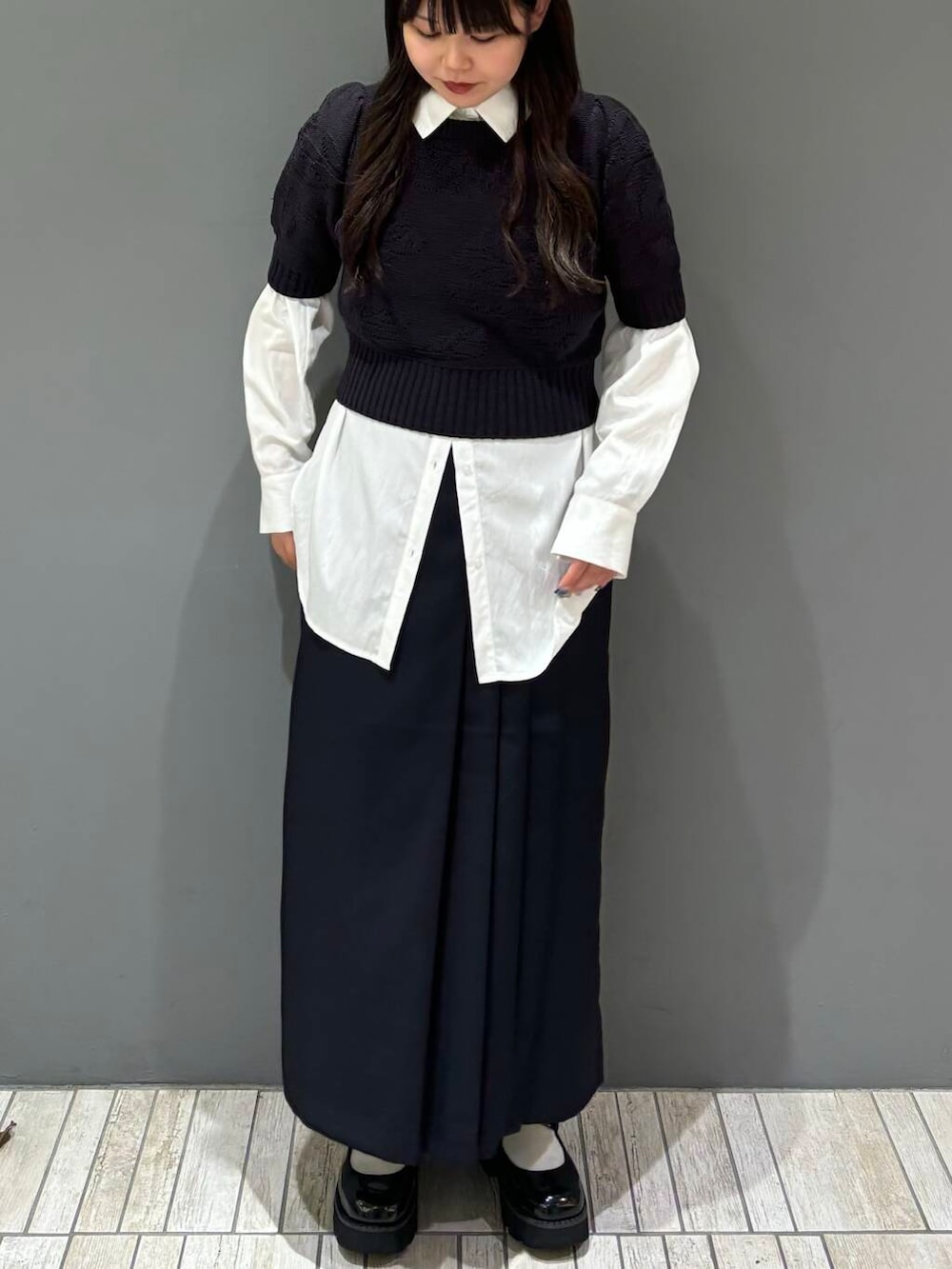 今回は、ネイビーで統一し、少しプレッピースタイル風にしてみました!