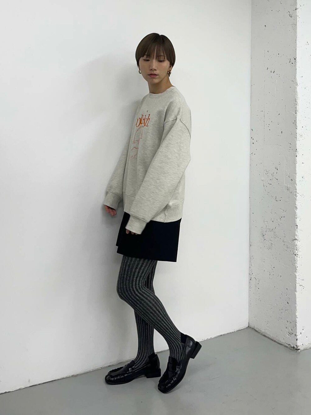 カジュアルなロゴスウェットを、ボトムスや小物を黒系でまとめて