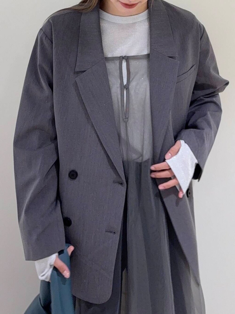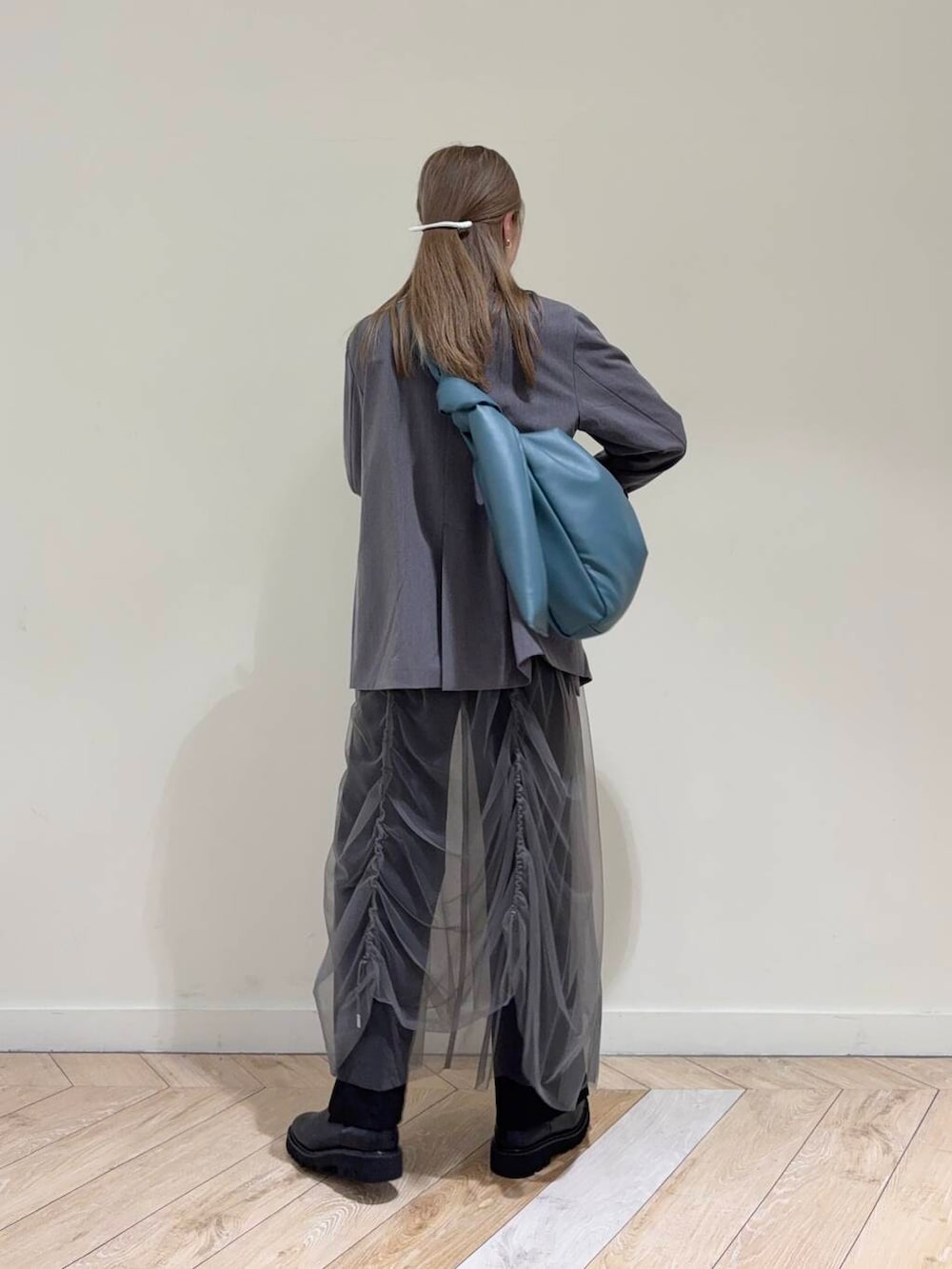 全体的には少しゆるっとしたシルエットですが、控えめな肩パットが入っているので、かっちりとしたモードな雰囲気になりますよ♬