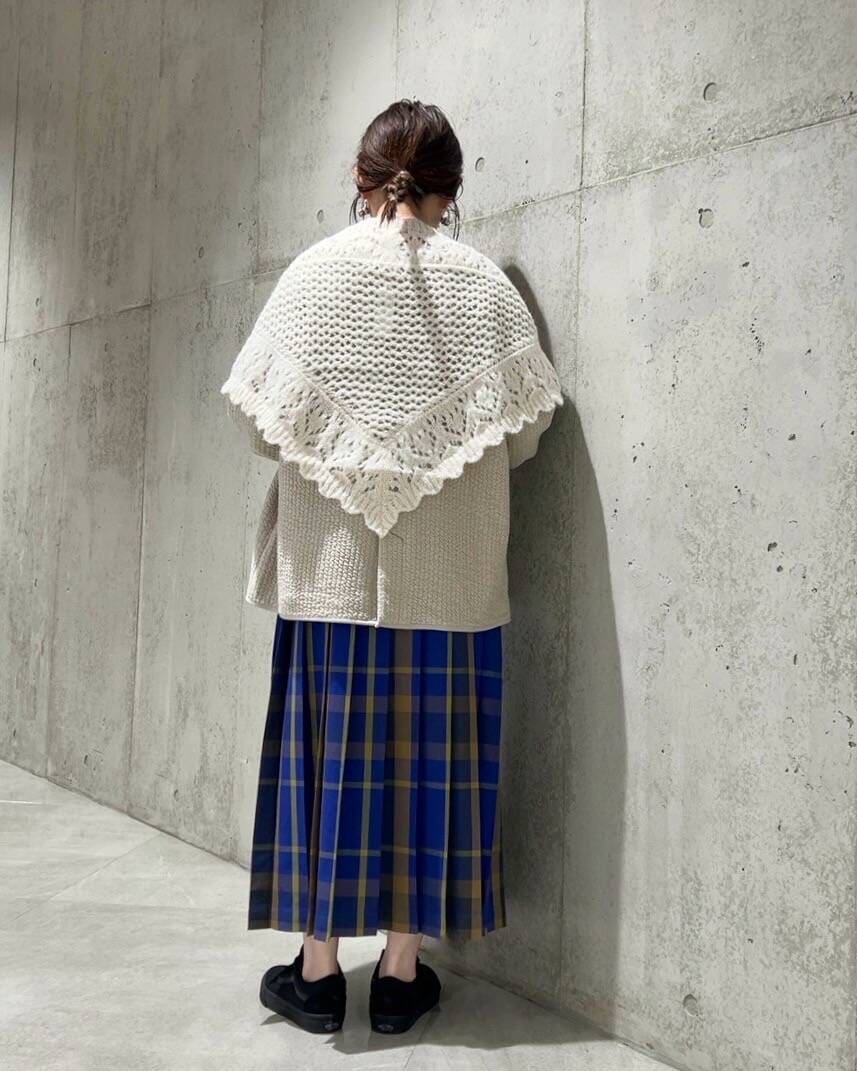 ニットのストールを合わせて、甘さもプラスしてみました。