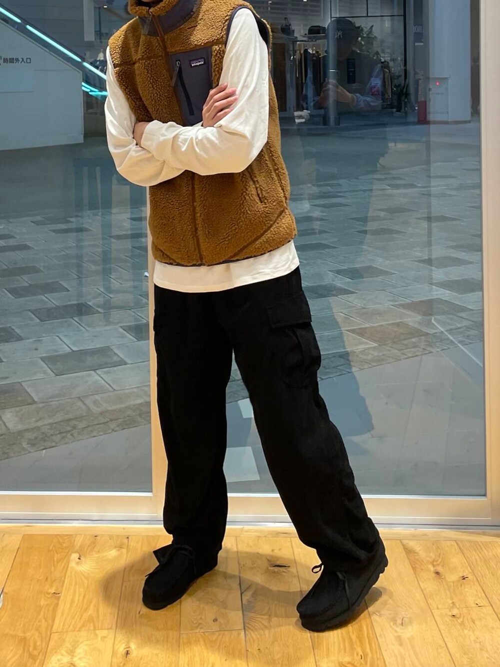 靴はclarksで合わせました!底があるタイプでも、合わせやすいパンツとなっております!