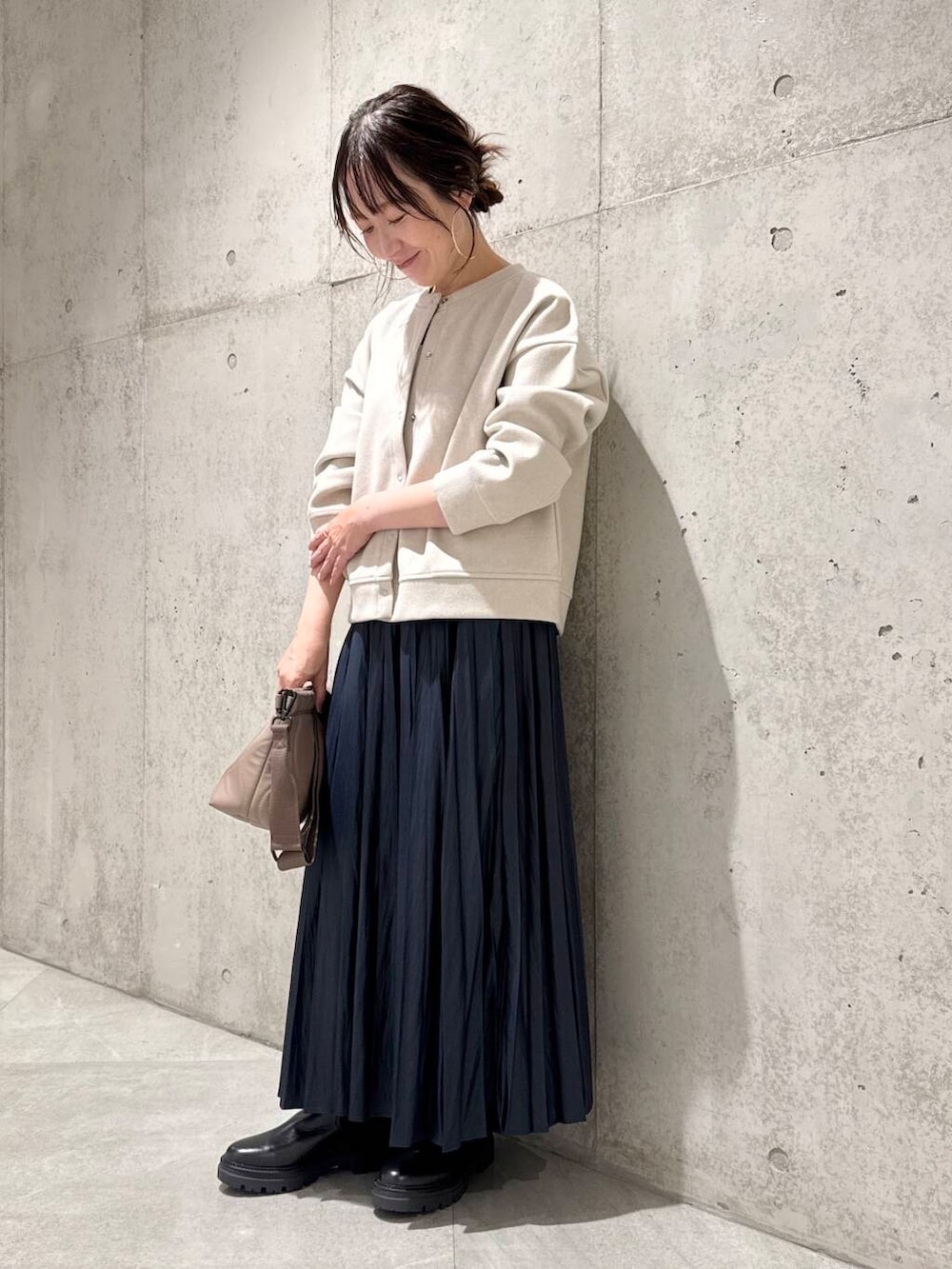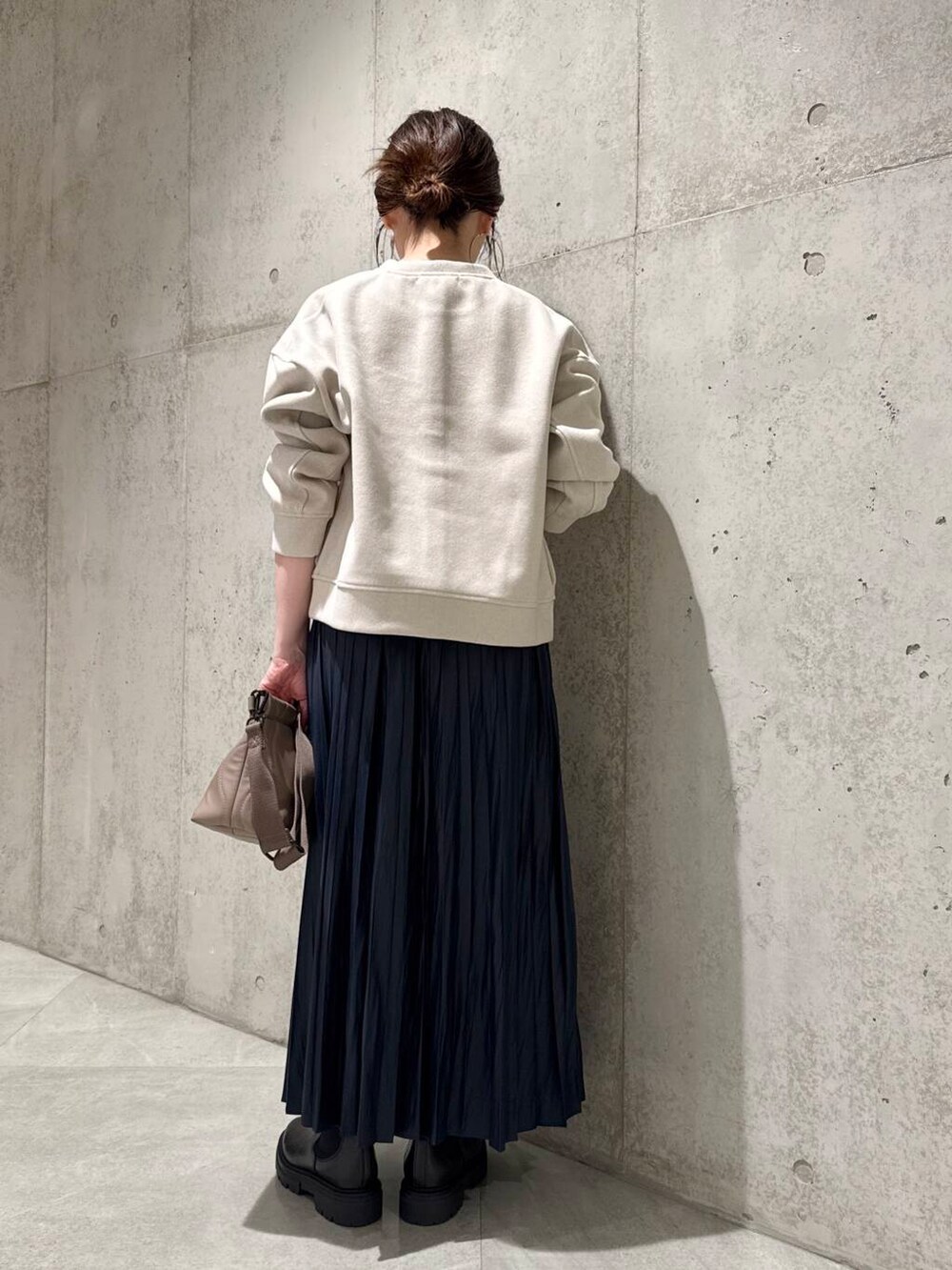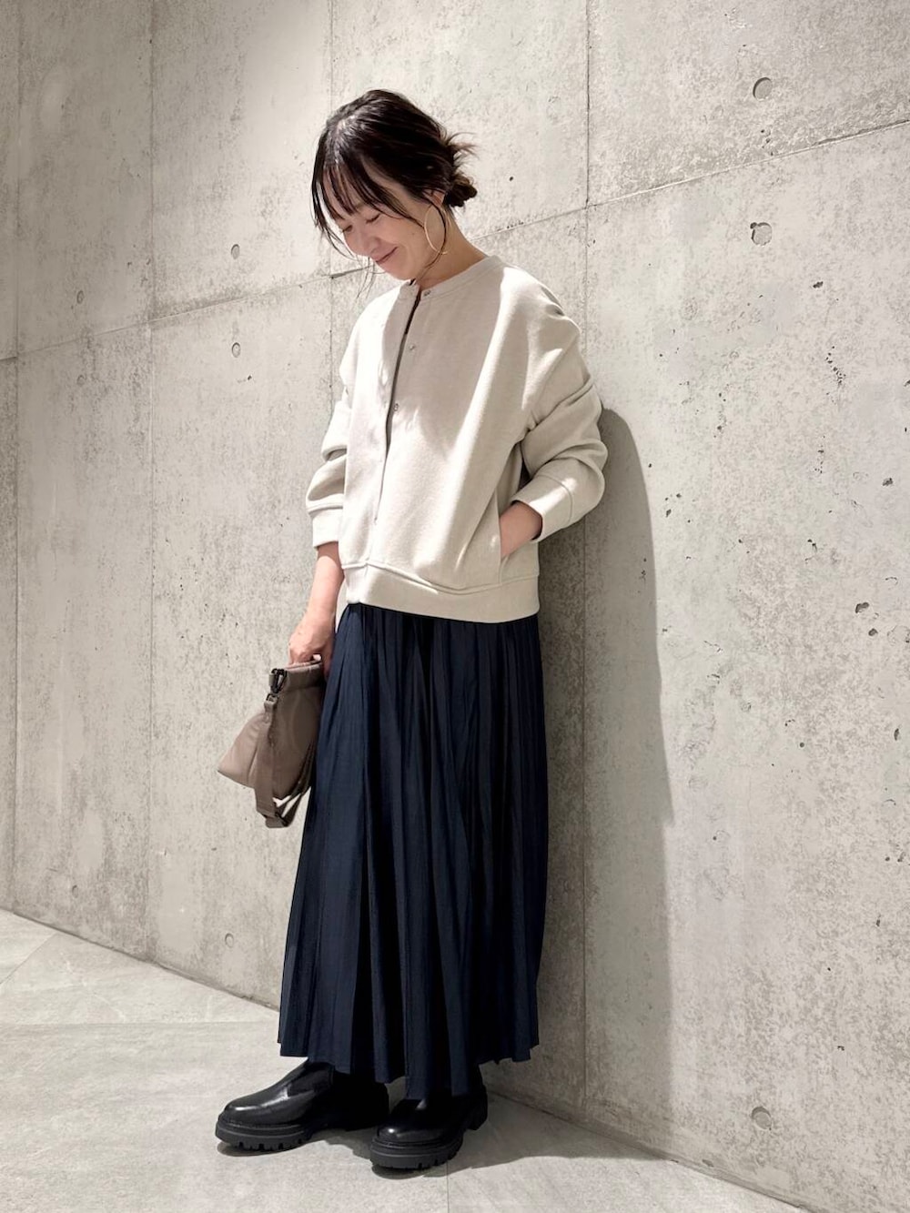 今回は、プリーツスカートで合わせて、きちんと感のあるコーディネートです。