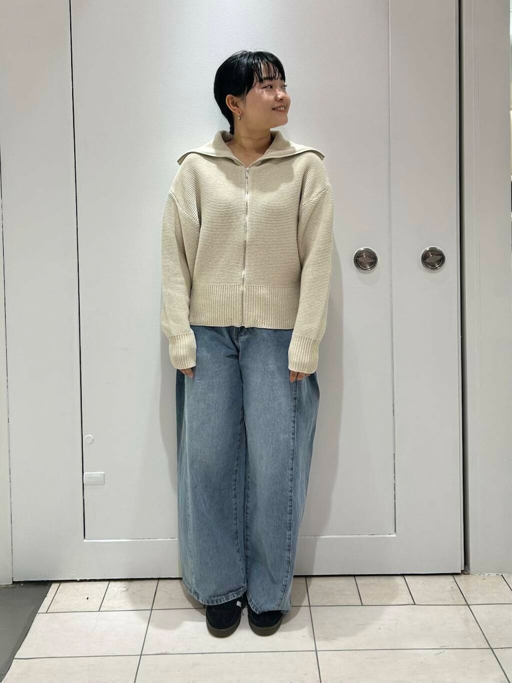 セーラーカラーZIPニットは羽織りスタイルにもなる優れもの!
