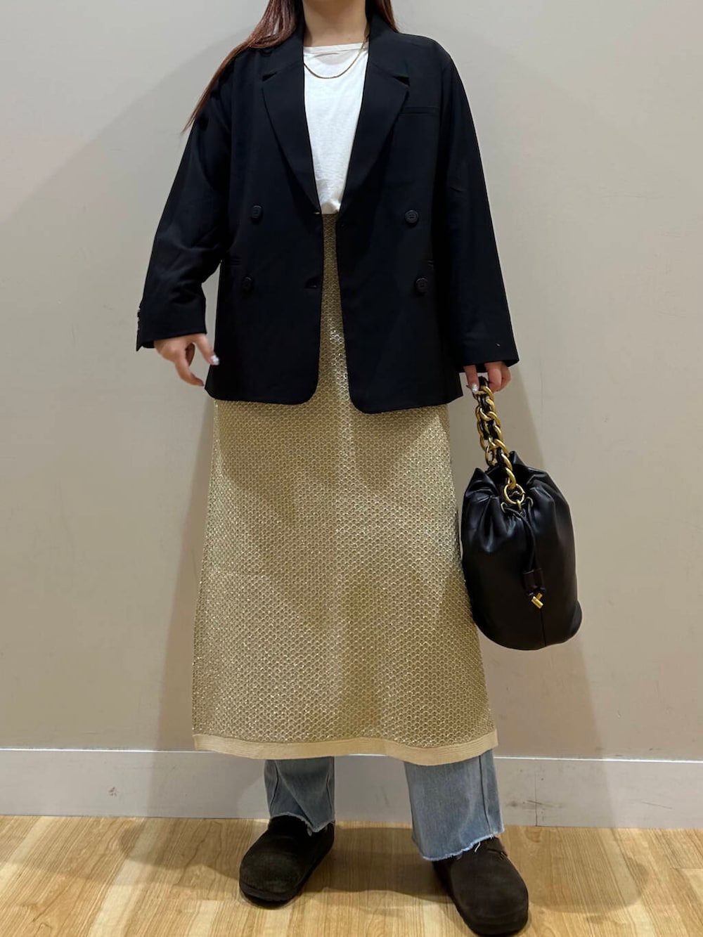 デニム丈感の関係でSサイズを着用しておりますが、ウエスト全然閉まらないので私と同じくらいの体型の方はMサイズがおすすめです!