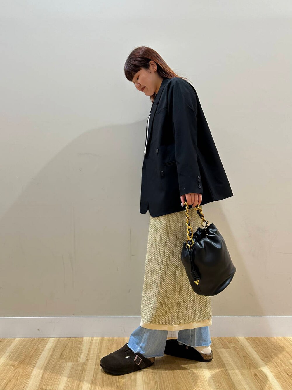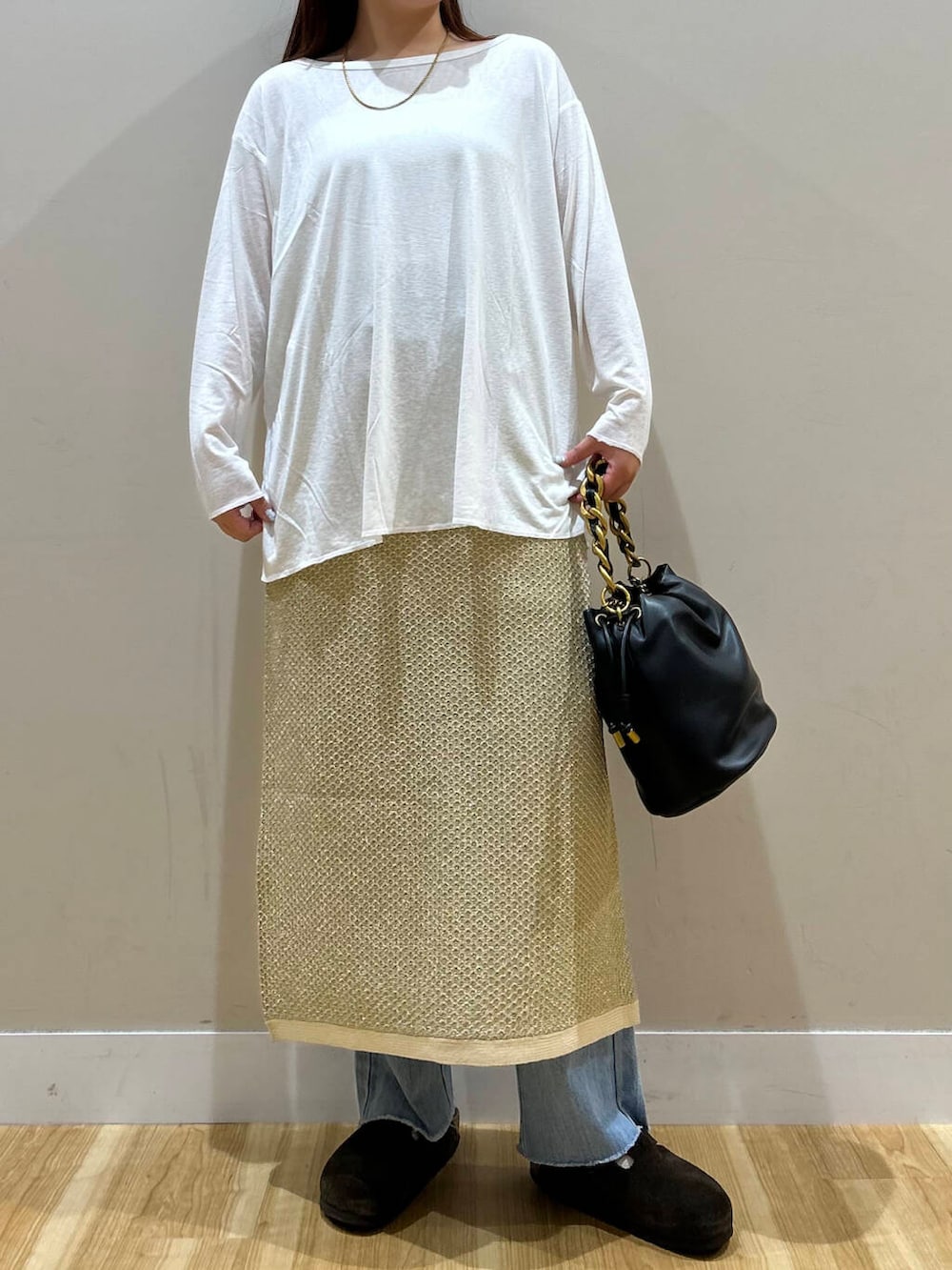 今回はウエストを一度折ってレイヤードスカート風に着用しております◎
