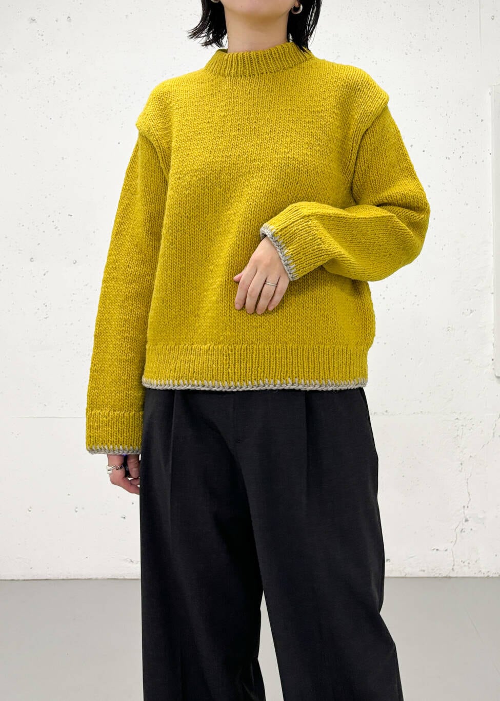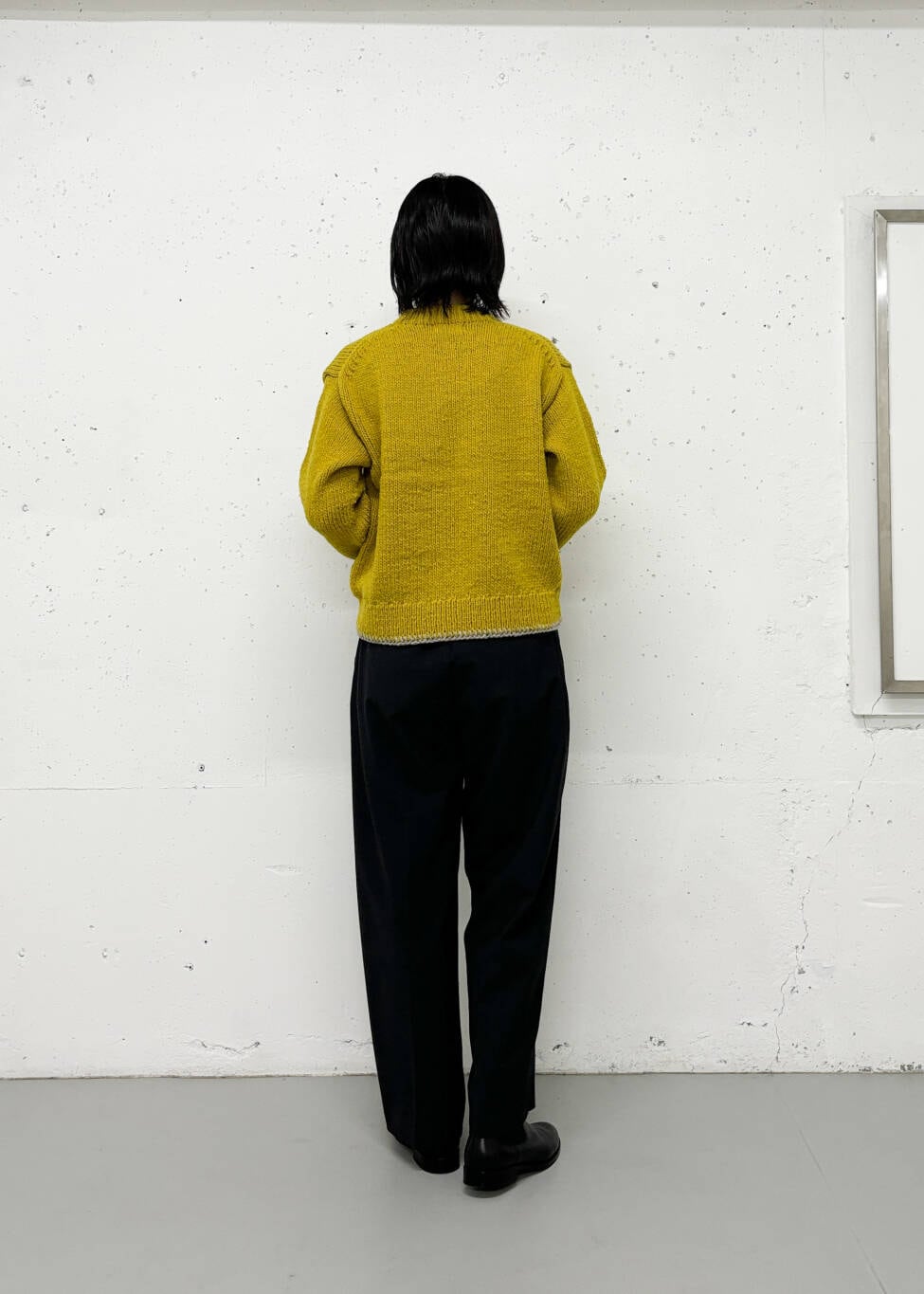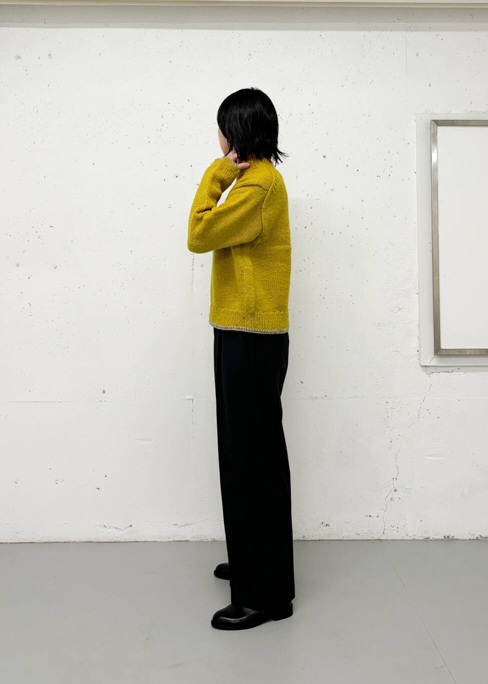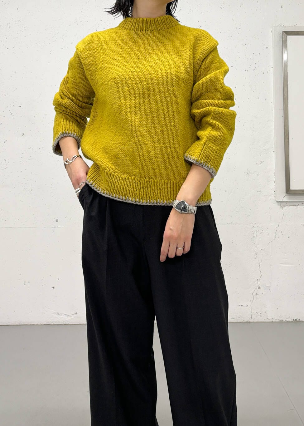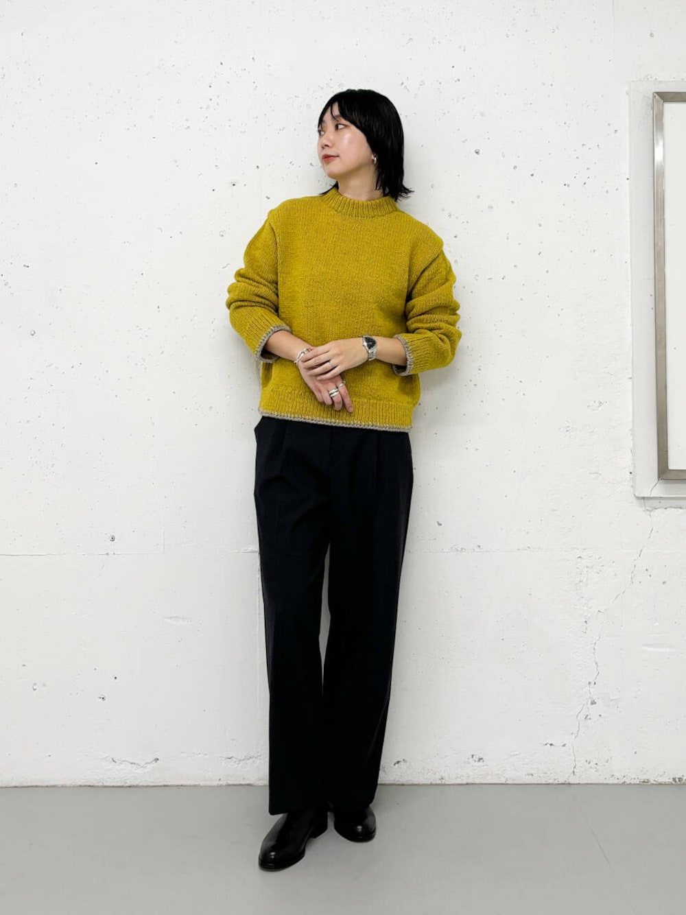 ニットのカラーが映えるよう、ボトムはシンプルに。
