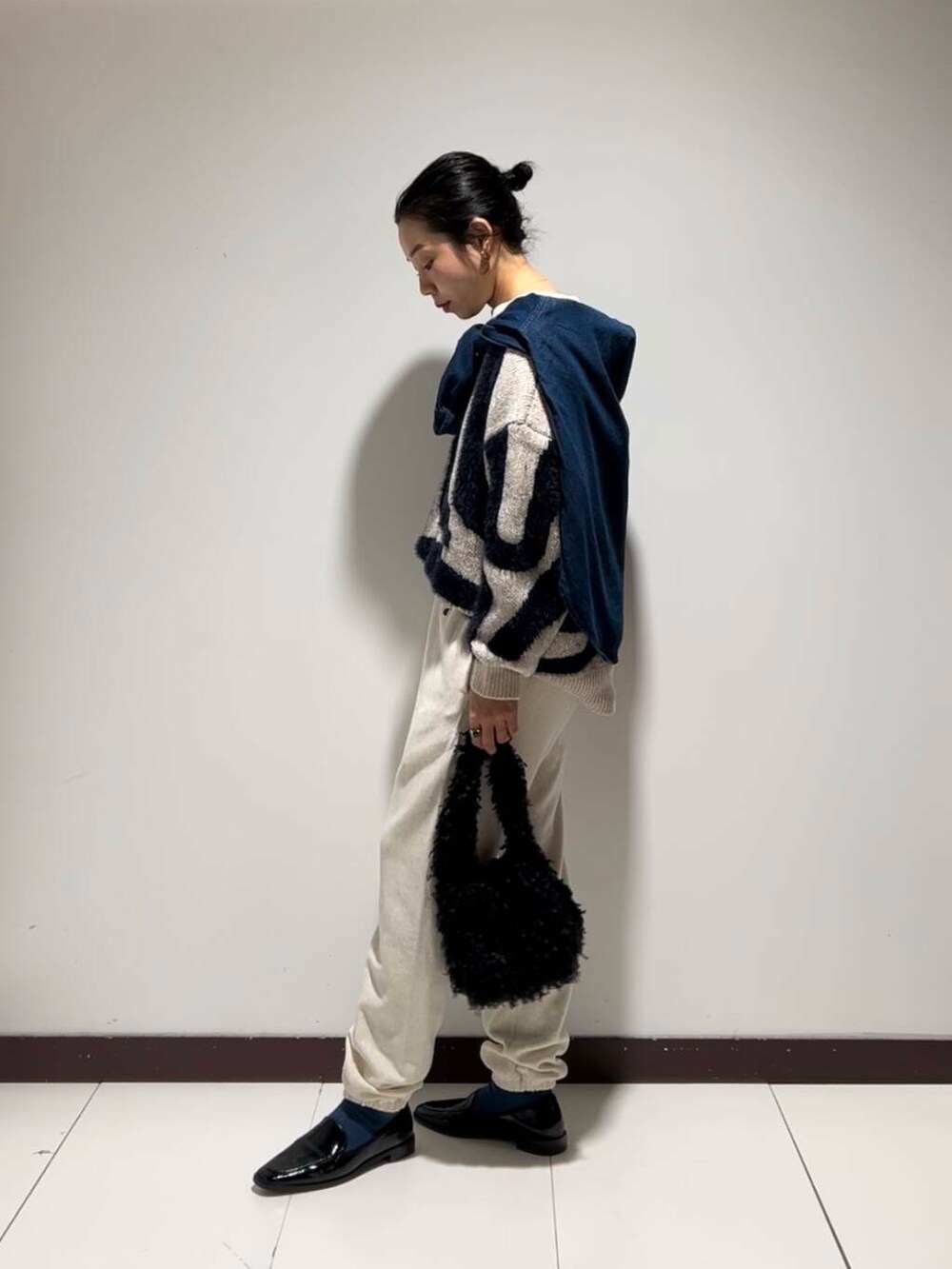 スウェットパンツと合わせて、ラフになり過ぎないようにシャツやローファーなど、キレイめなアイテムを取り入れて、大好きなバランスに♩