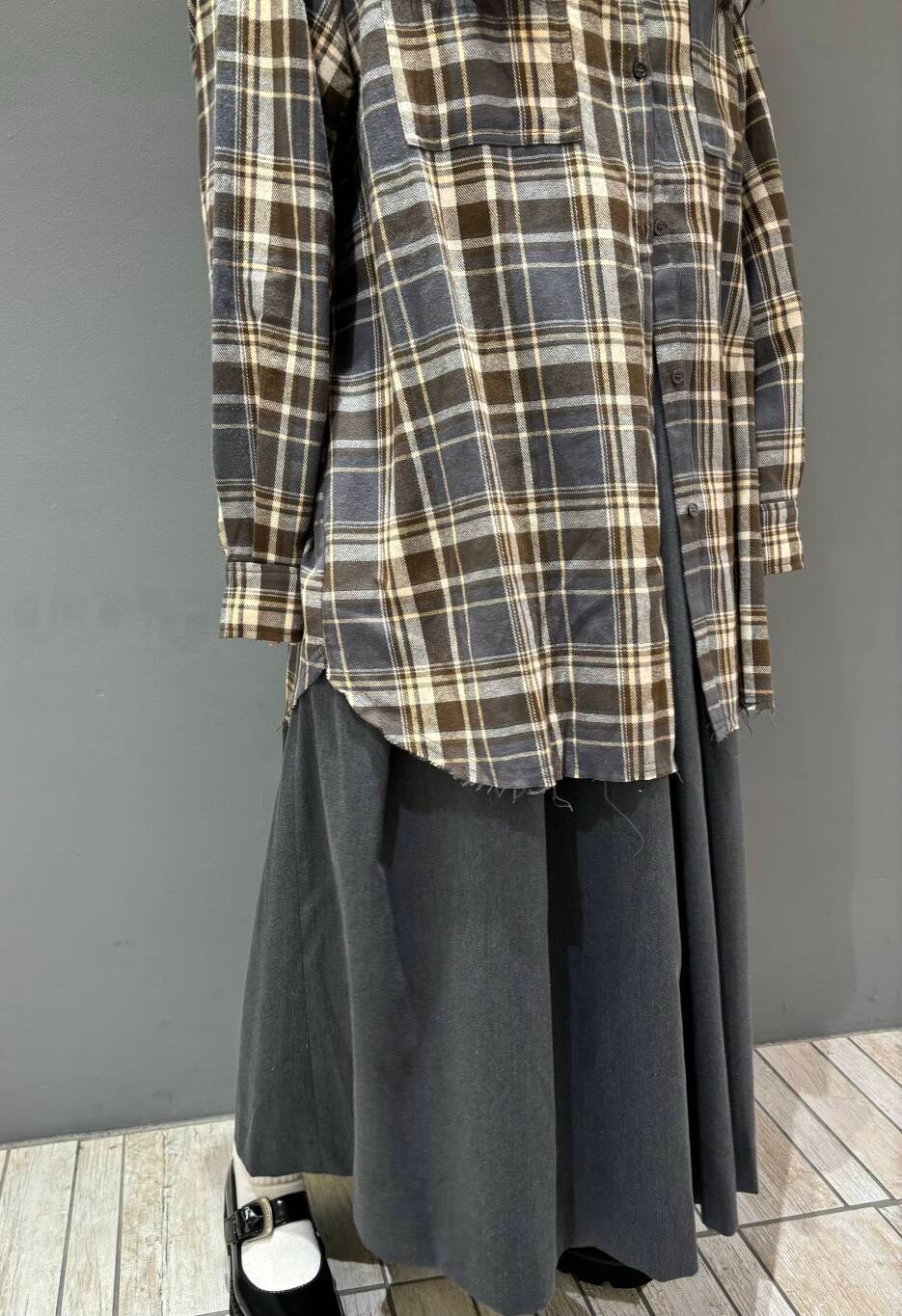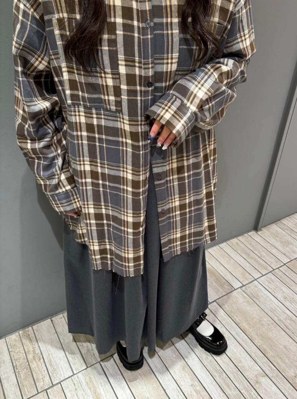 秋に着たいチェックシャツ!新作アイテムです👍🏻サイズ感は153cmの私が着て、おしりが全部隠れる長さなので体型カバーにもピッタリ!身幅もゆったりなので、インナーにタートルネックなどのニットを入れても十分余裕があります◎