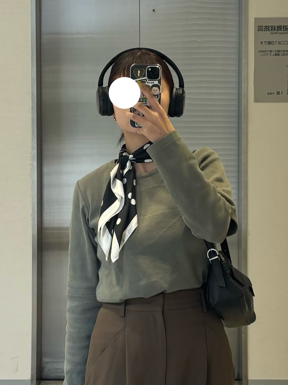 スカーフはアレンジ次第で何通りもコーデを作れるので一枚はマストです!