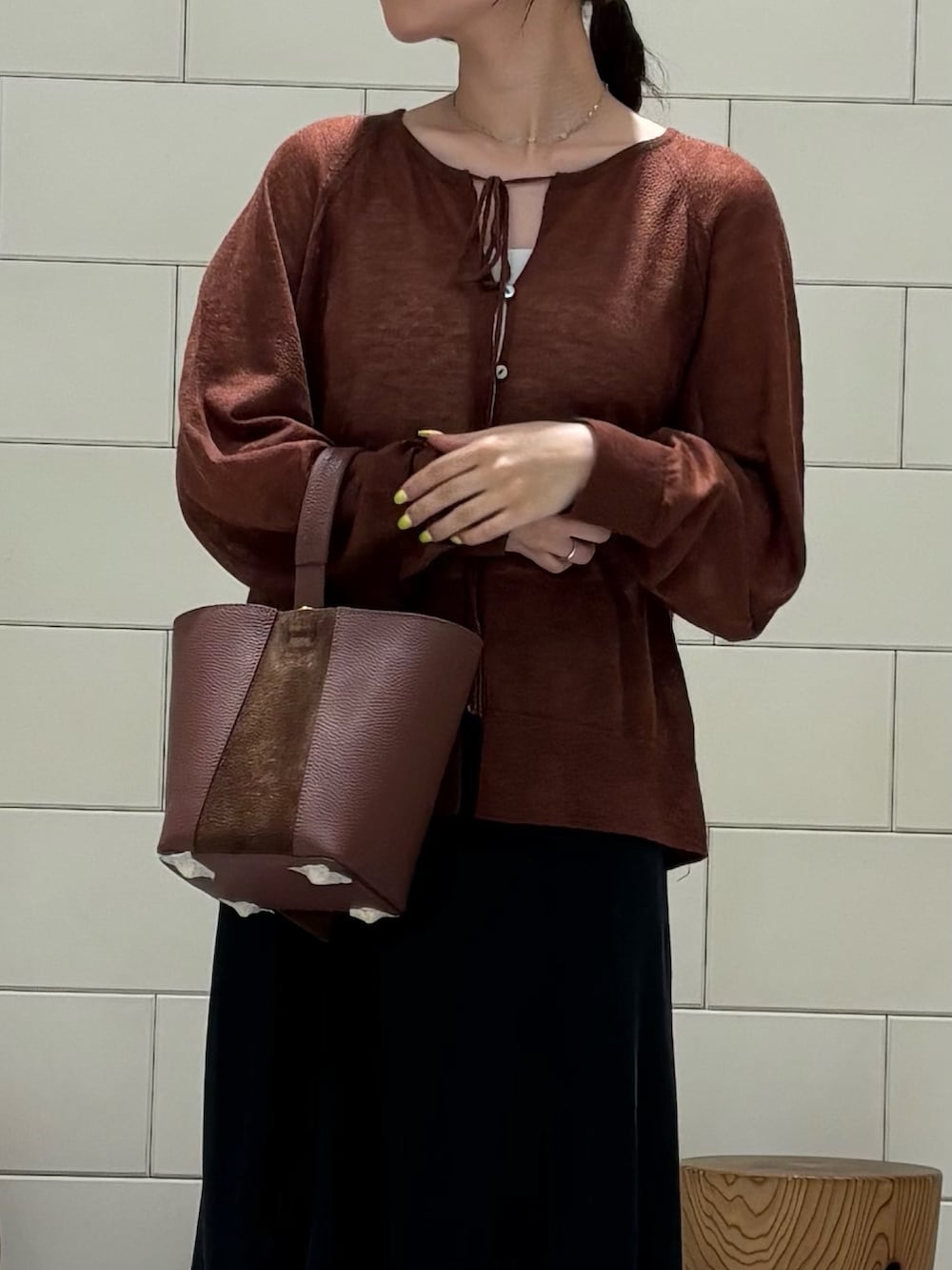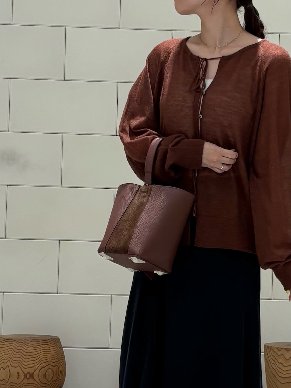 切り替えデザインが特徴の秋色バッグです。レザー×スウェードが贅沢でデザイン性◎日常使いに使いやすいサイズ感です。(AULENTTI/品番:RWA7-FB5976DOSA)
