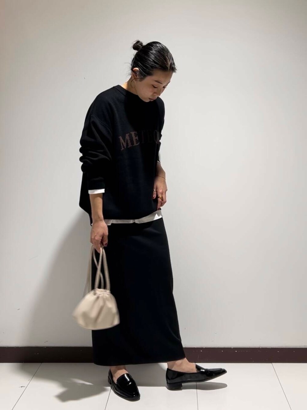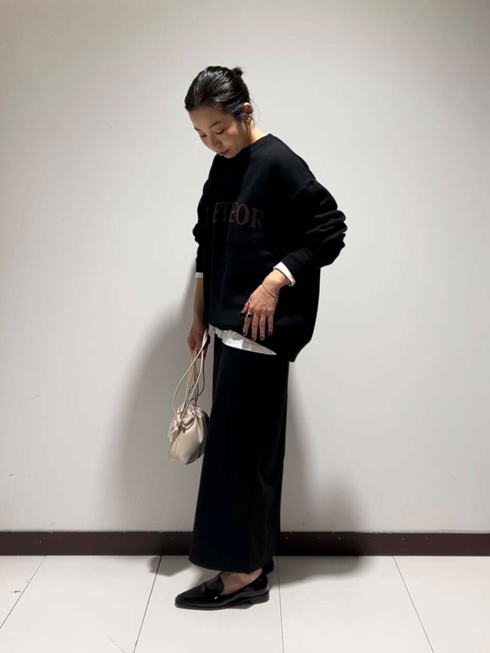 秋冬はコーデの色味が重くなりがちですが、髪の毛をアップにしたり白のインナーや小物を組み合わせると抜け感がでる気がします♩