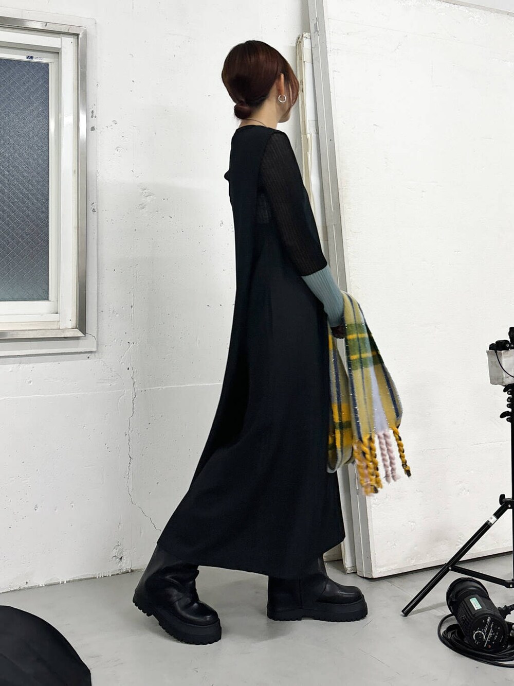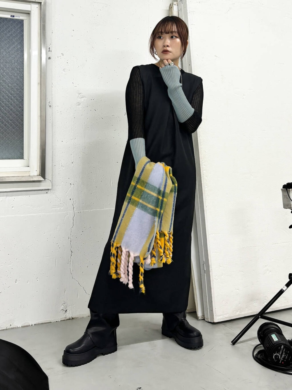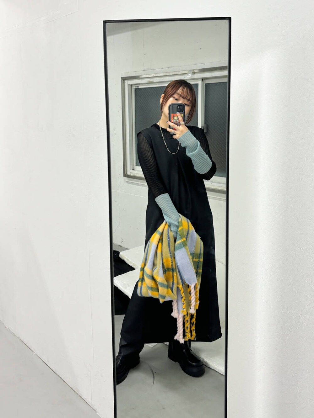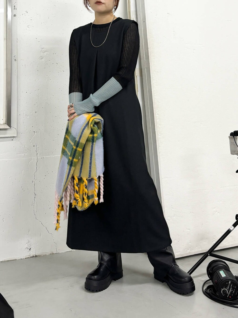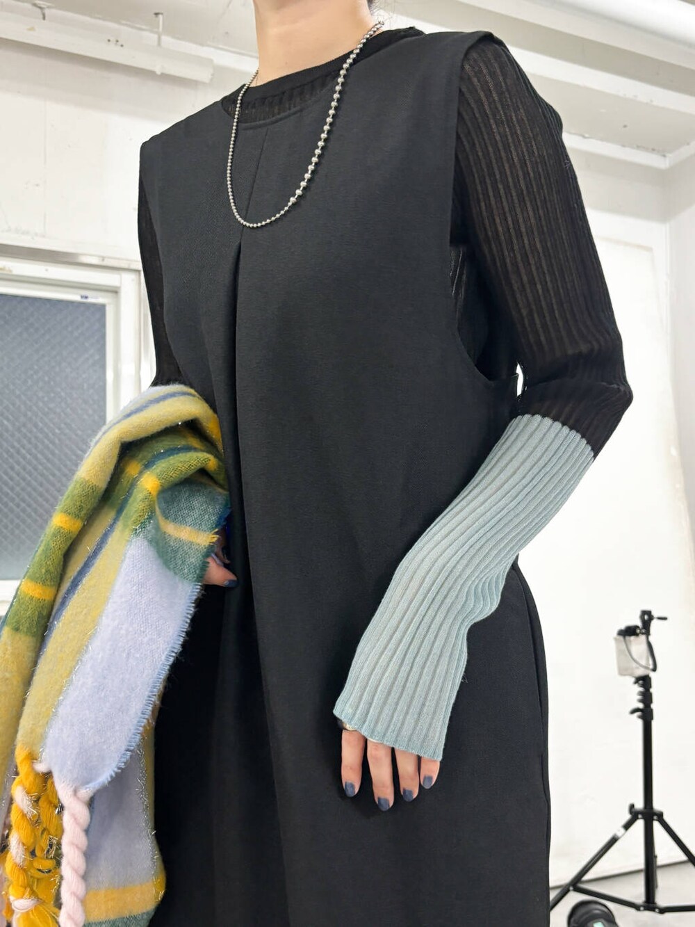 マルチカラーでかわいいマフラーを合わせて
