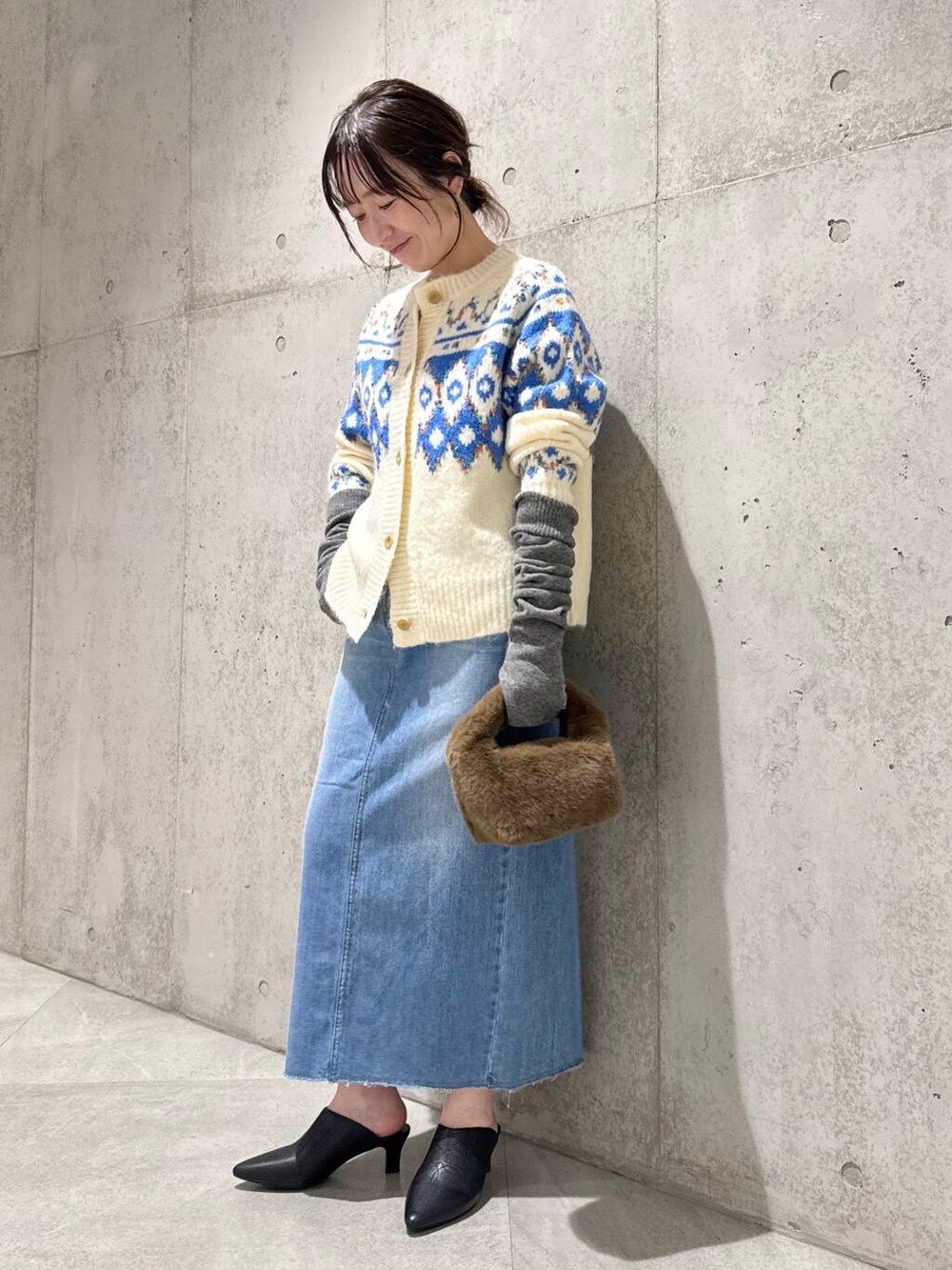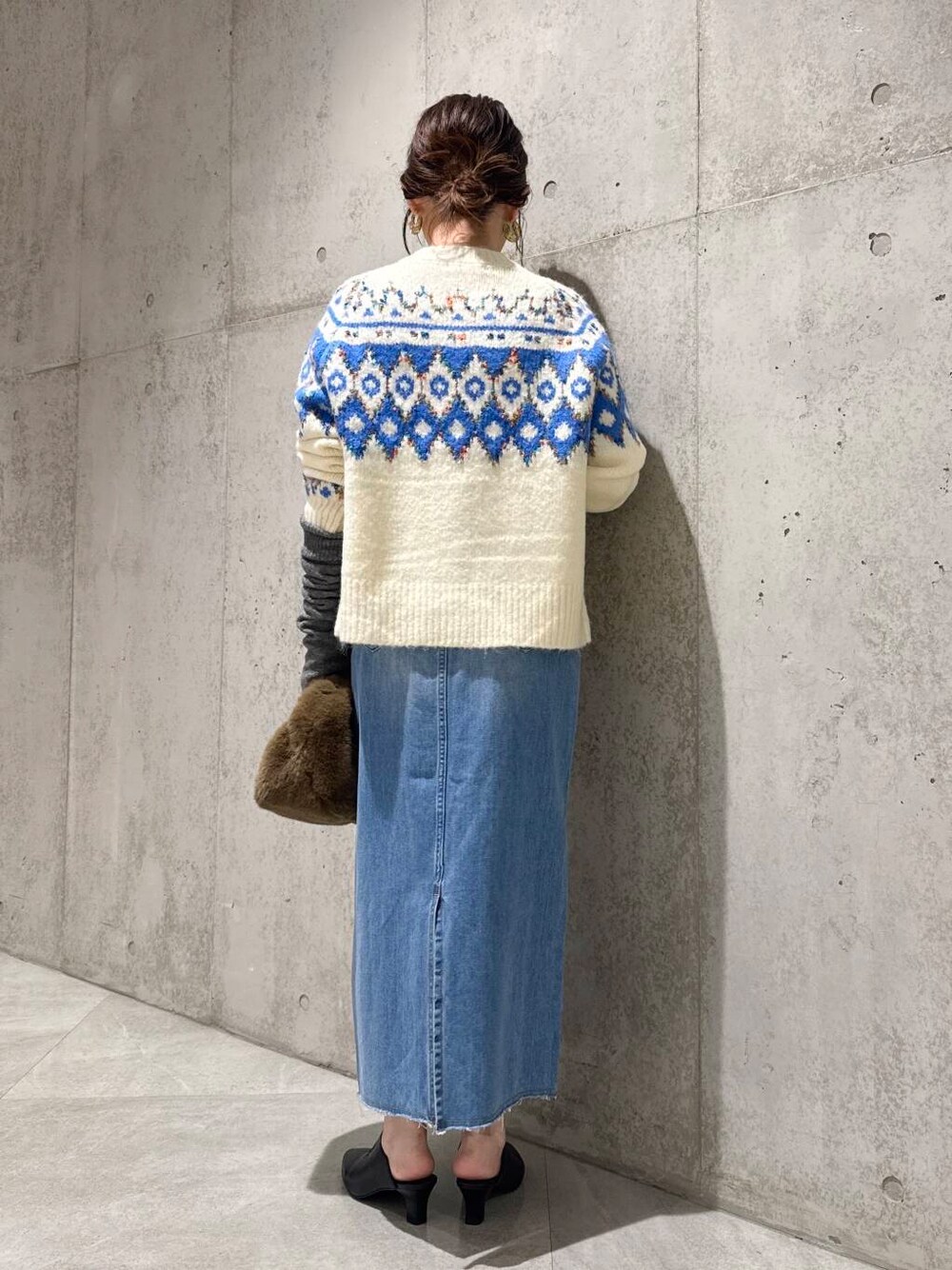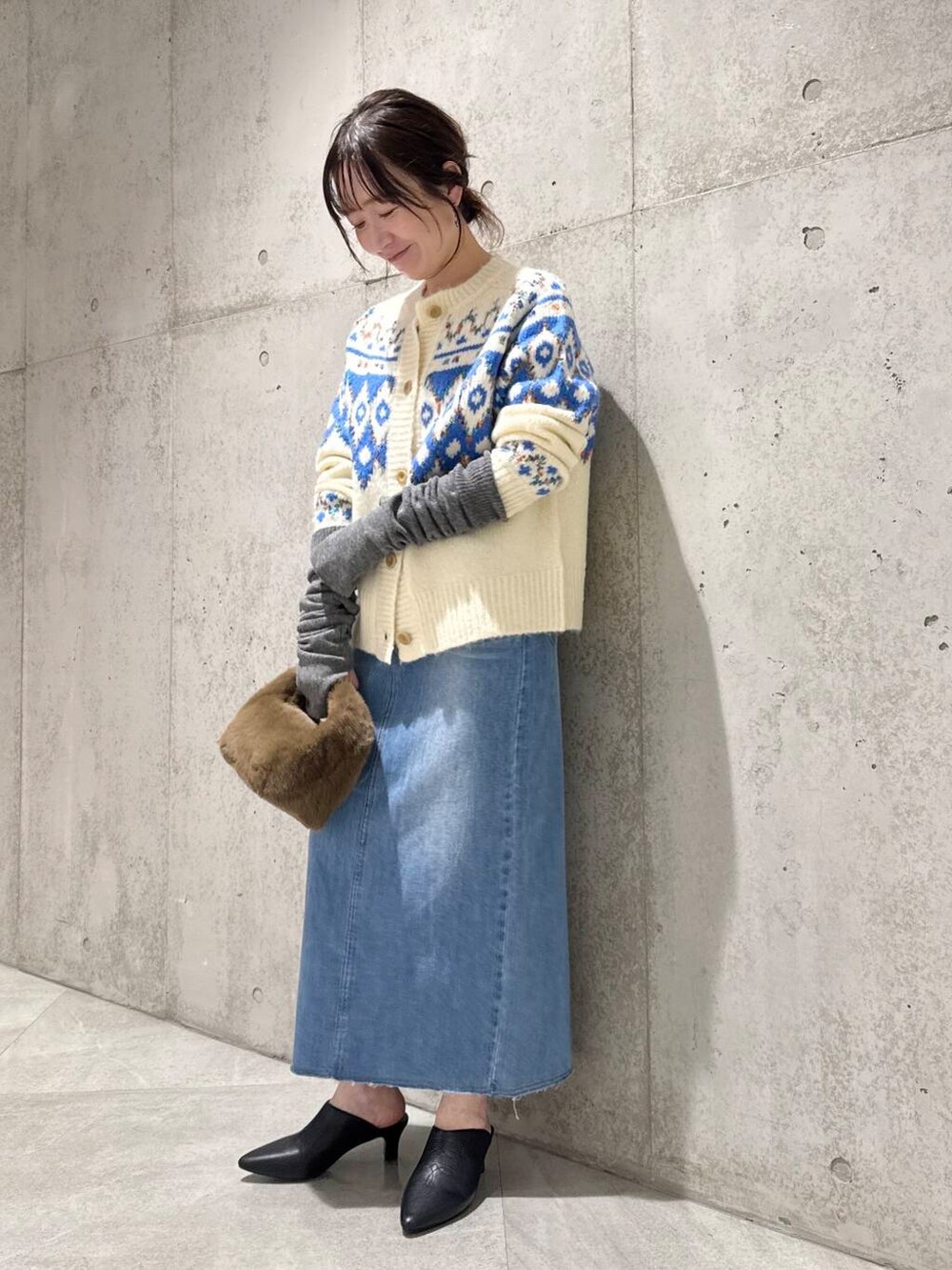 今回は、ニットを主役に、デニムのスカートを合わせた、カジュアルコーディネート。