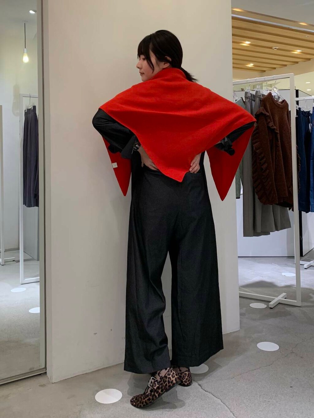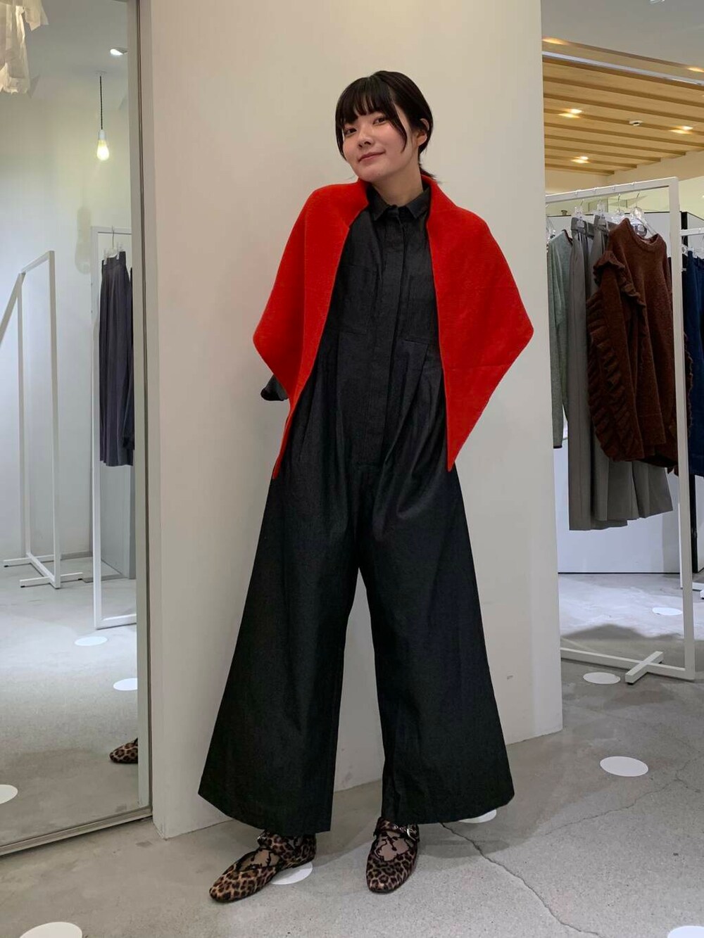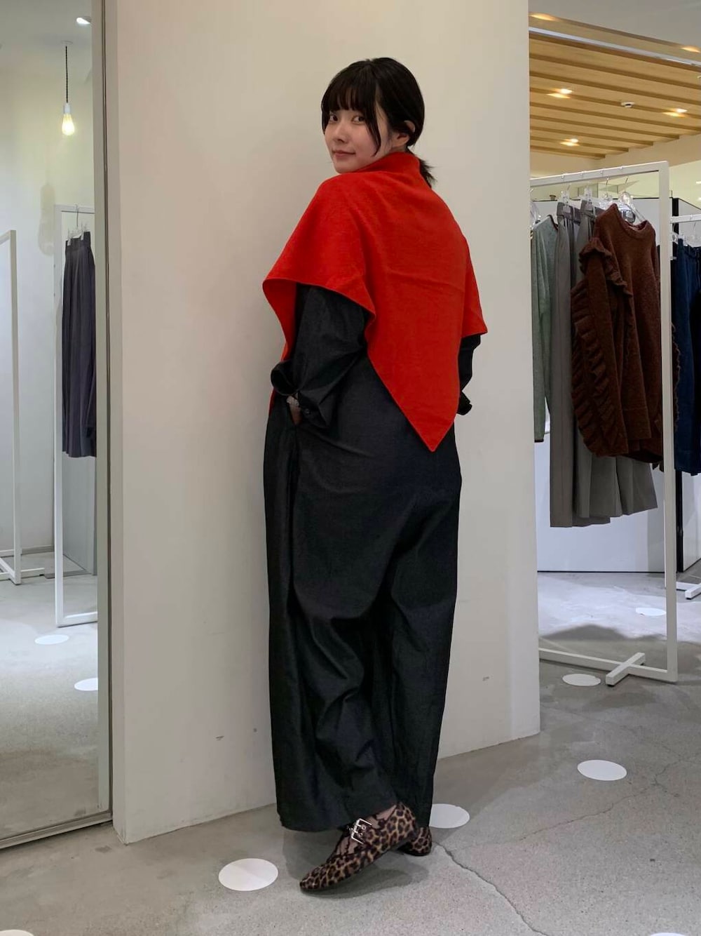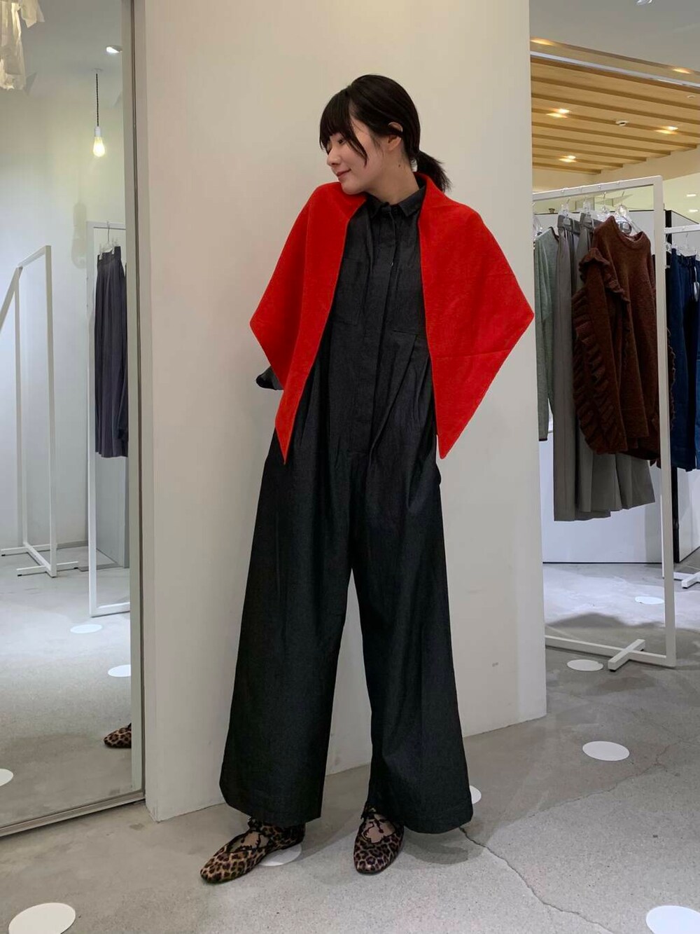今回はオールインワンにカーディガンとのセットのスカーフを合わせてみました!差し色にピッタリで目を引くコーデです^^