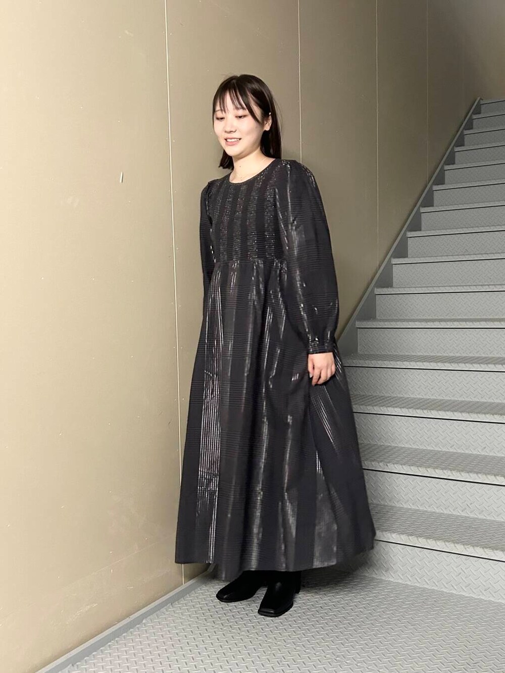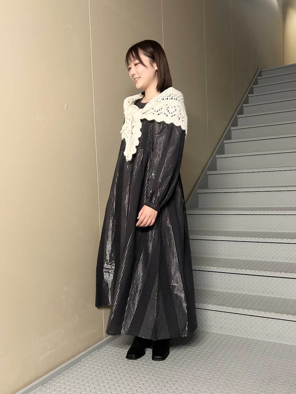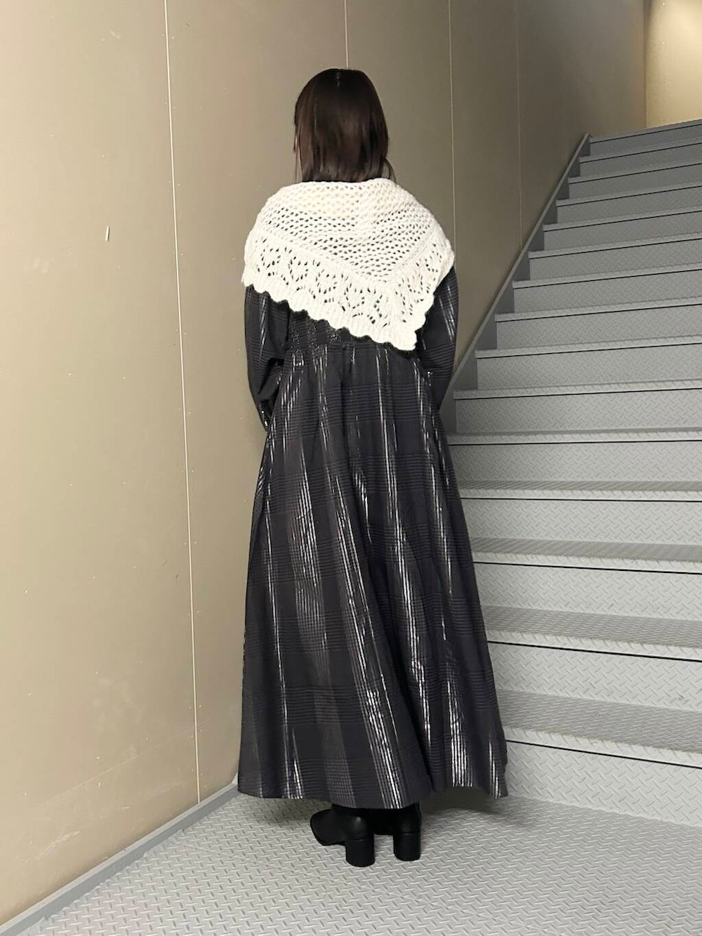 そのままだととても大人っぽい仕上がりですが、ニットストールを巻くことで可愛らしさがより引き立ちます❕