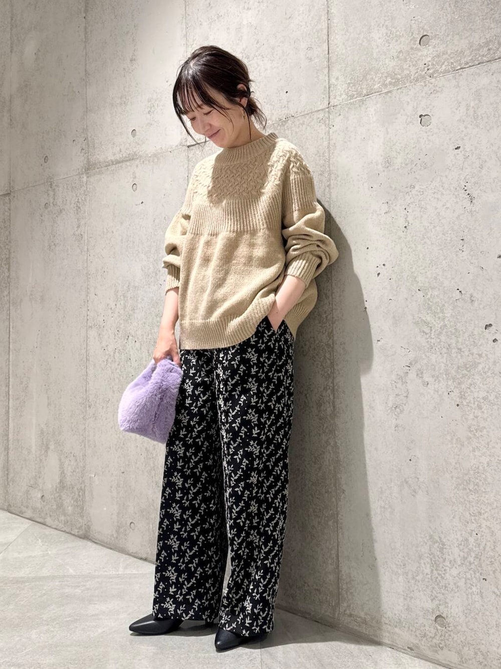 今回は、シックな柄がアクセントになったパンツを合わせて、秋らしいコーディネートにしました。