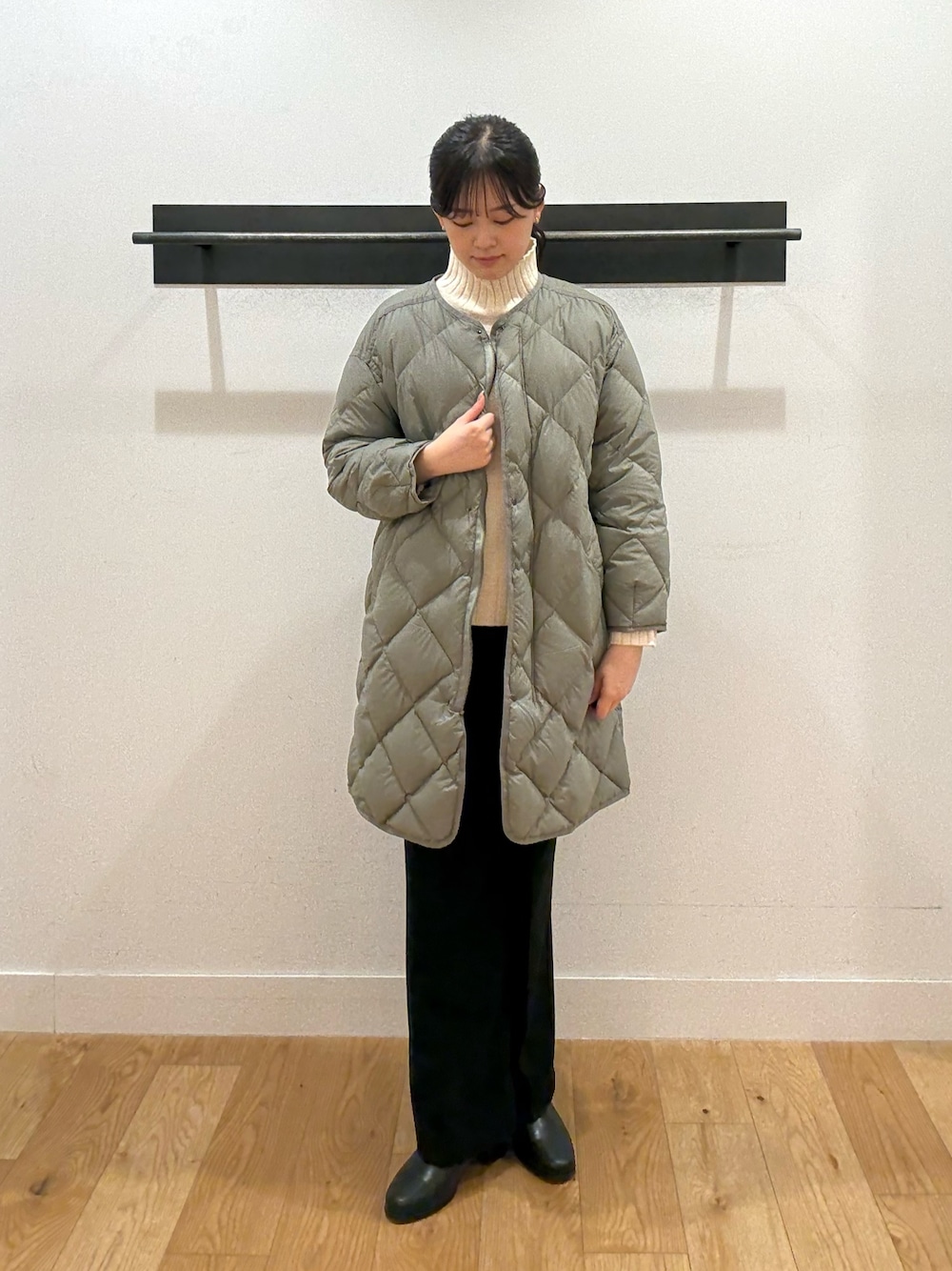 深みのある上品なカラーで、ブルーのニットとも相性抜群です。