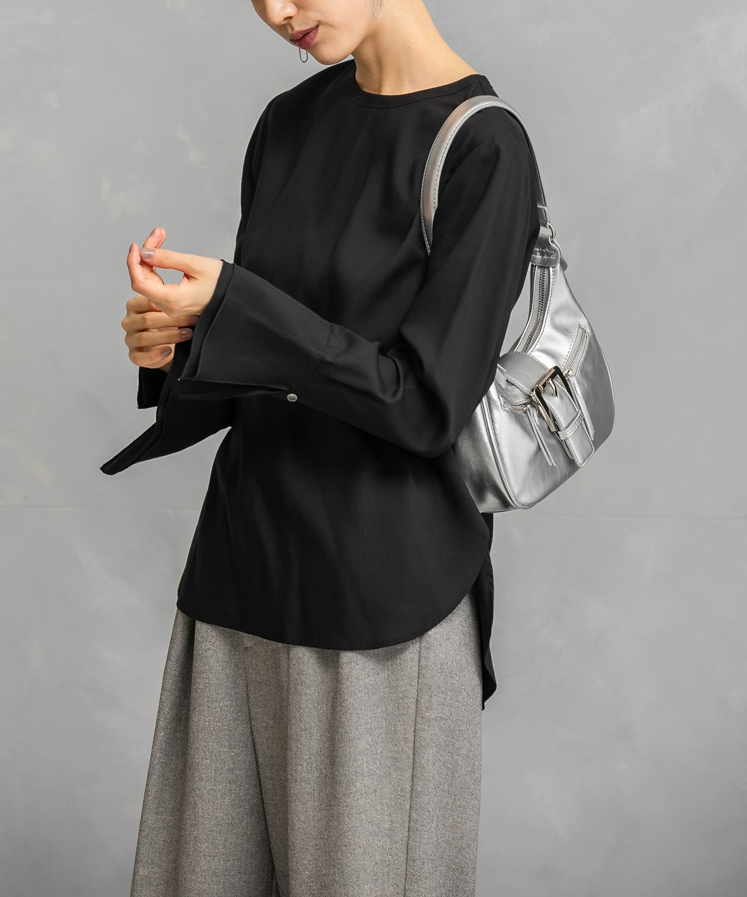 バックリボンダブルカフスブラウス