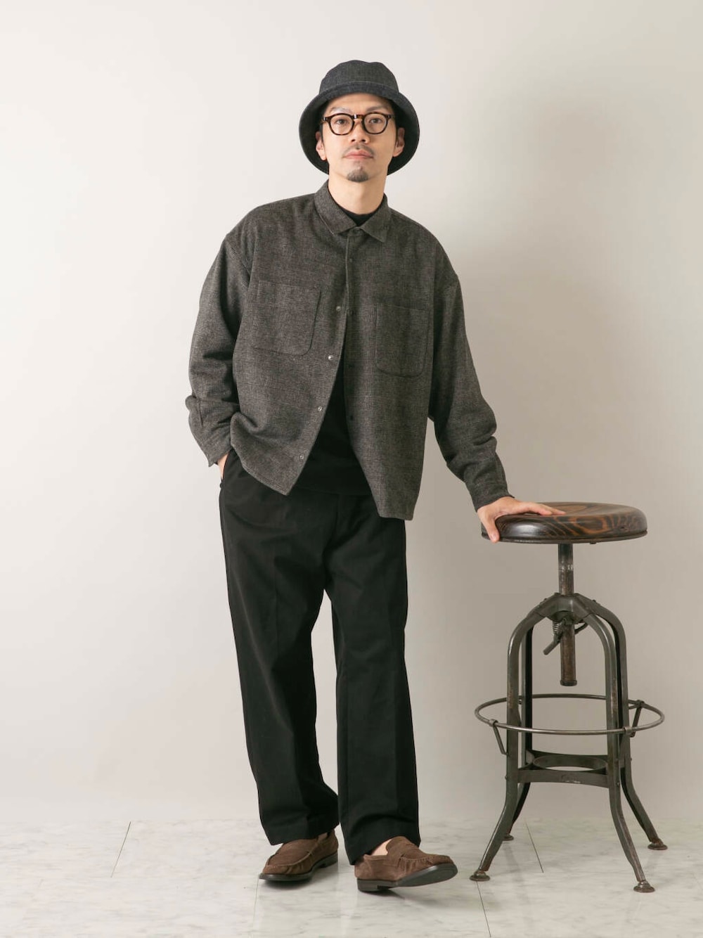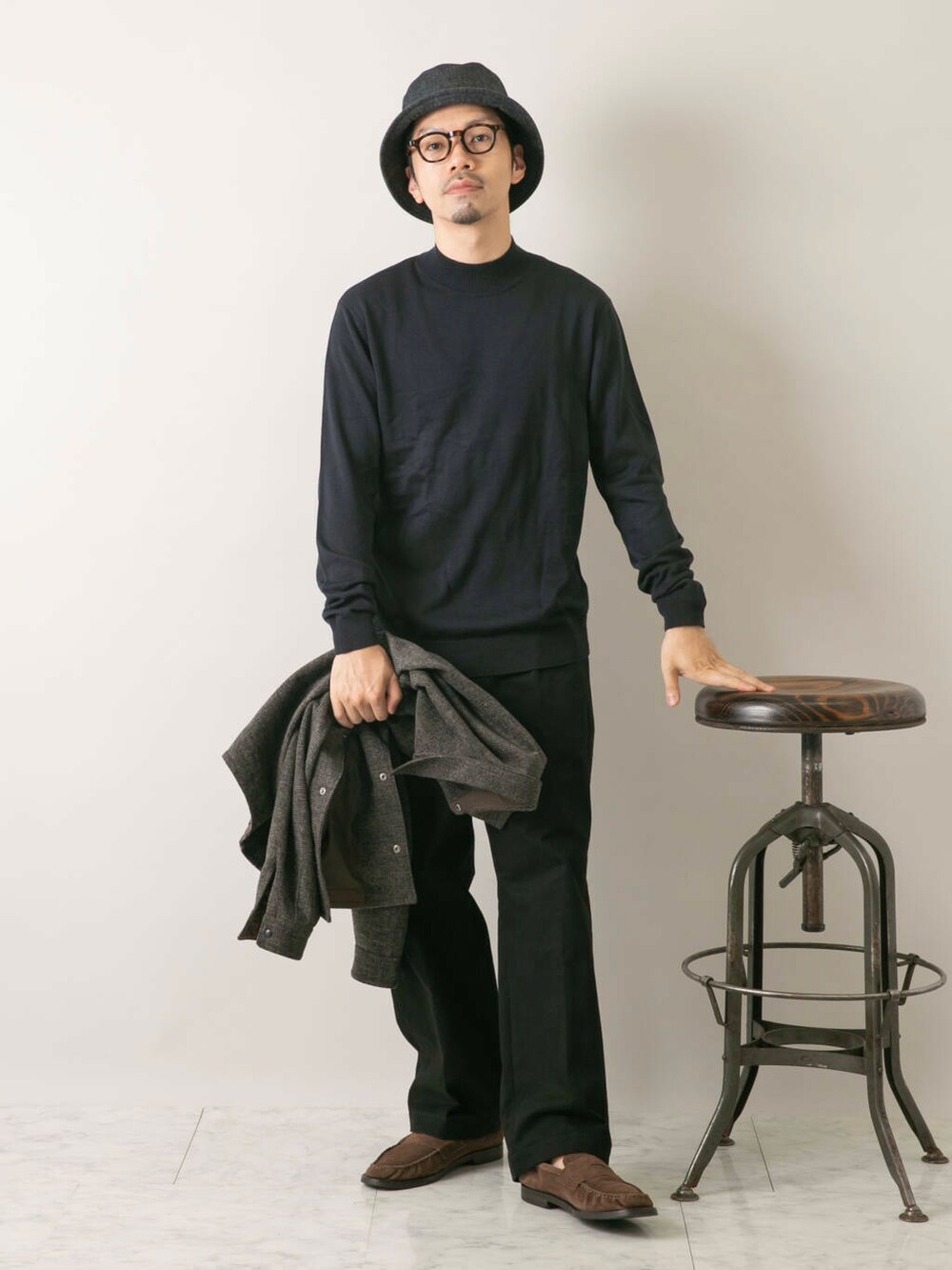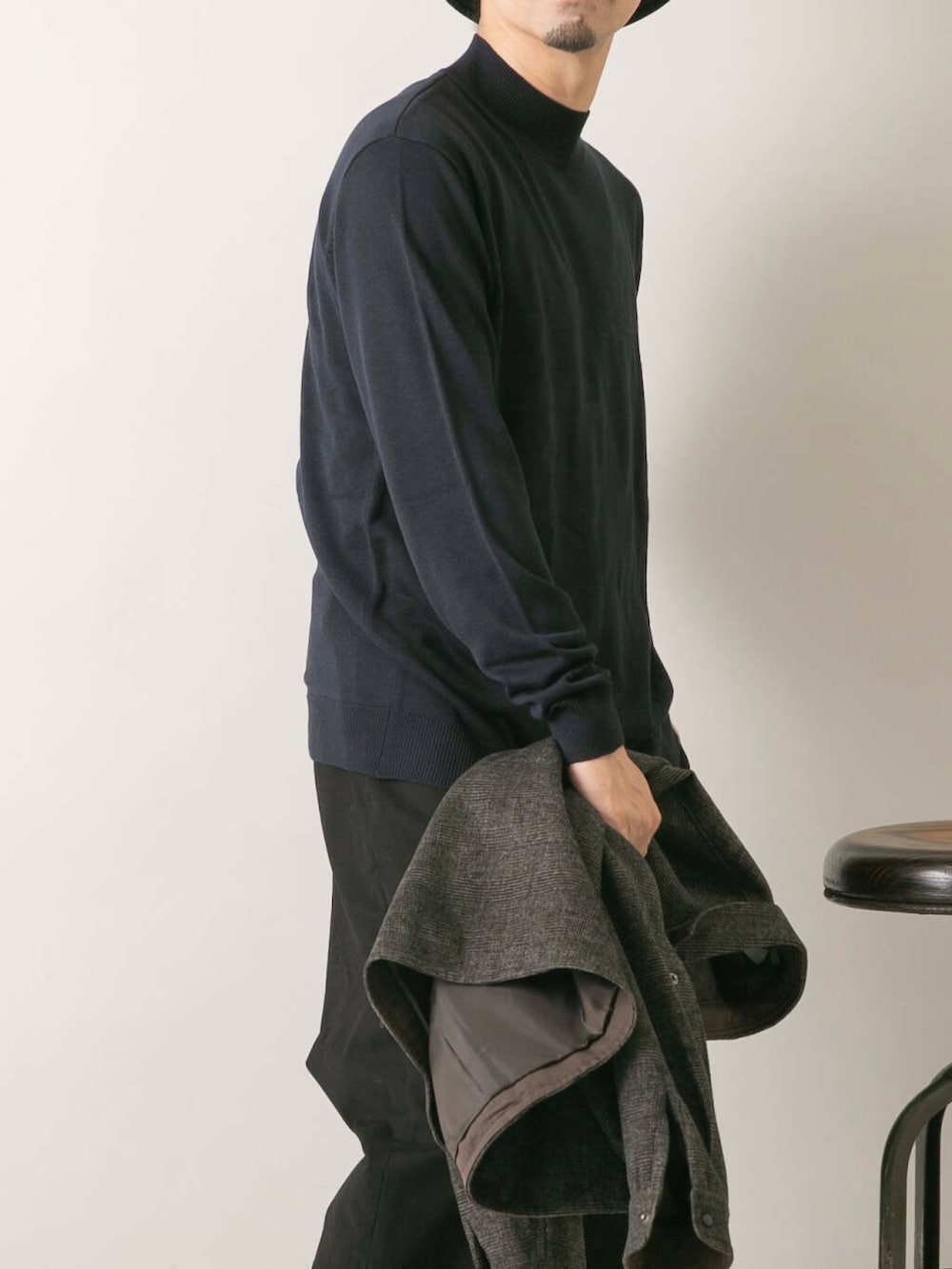 インナーに機能性ニットを合わせてスッキリ見えで秋から冬初めに丁度良いコーディネート