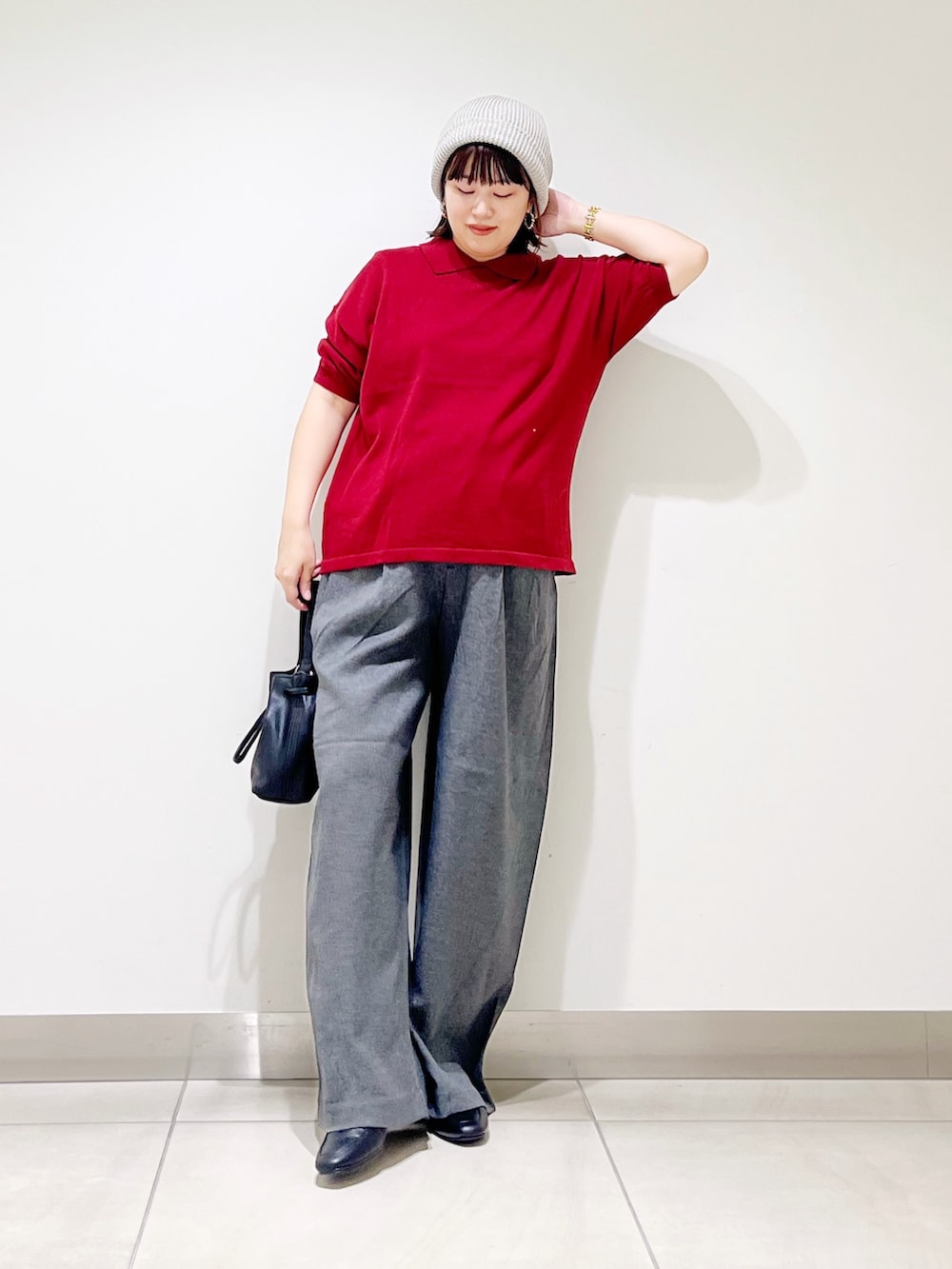 ほんのりカーブラインの今年らしいパンツを合わせました。