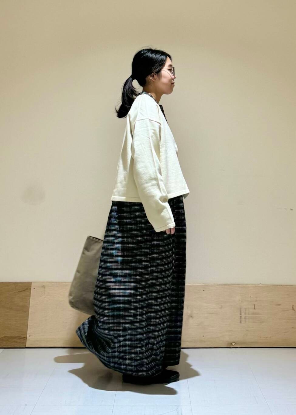 丈が長めなワンピースなどと合わせたときにスッキリした印象で着用できます◎